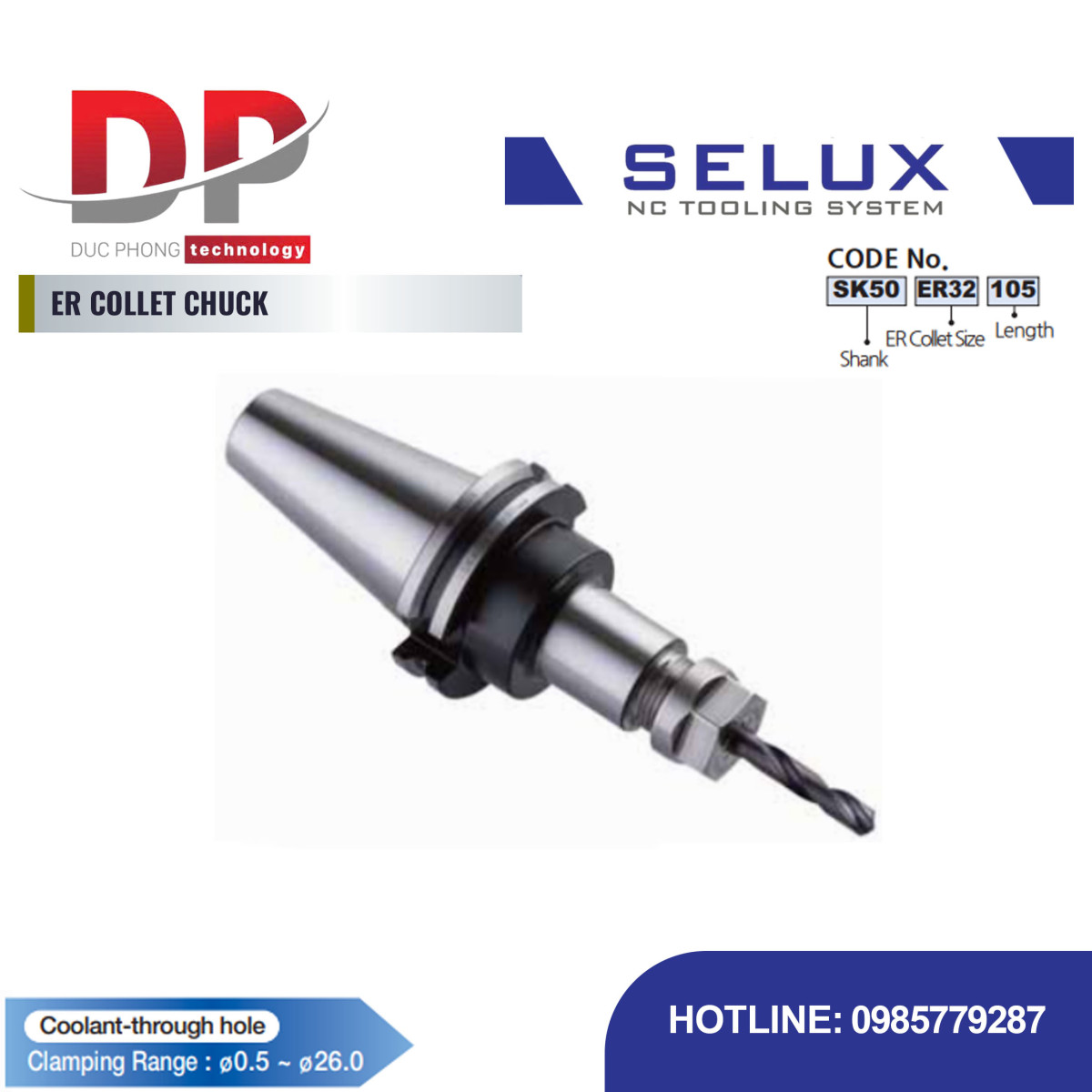 Bầu kẹp Collet ER Series SK Shank - Selux (ER COLLET CHUCK) là một đầu kẹp tiêu chuẩn và cơ bản được sử dụng rộng rãi, dùng collet ER để kẹp dụng cụ cắt, và được lắp đặt vào máy CNC thông qua chuôi SK Shank.