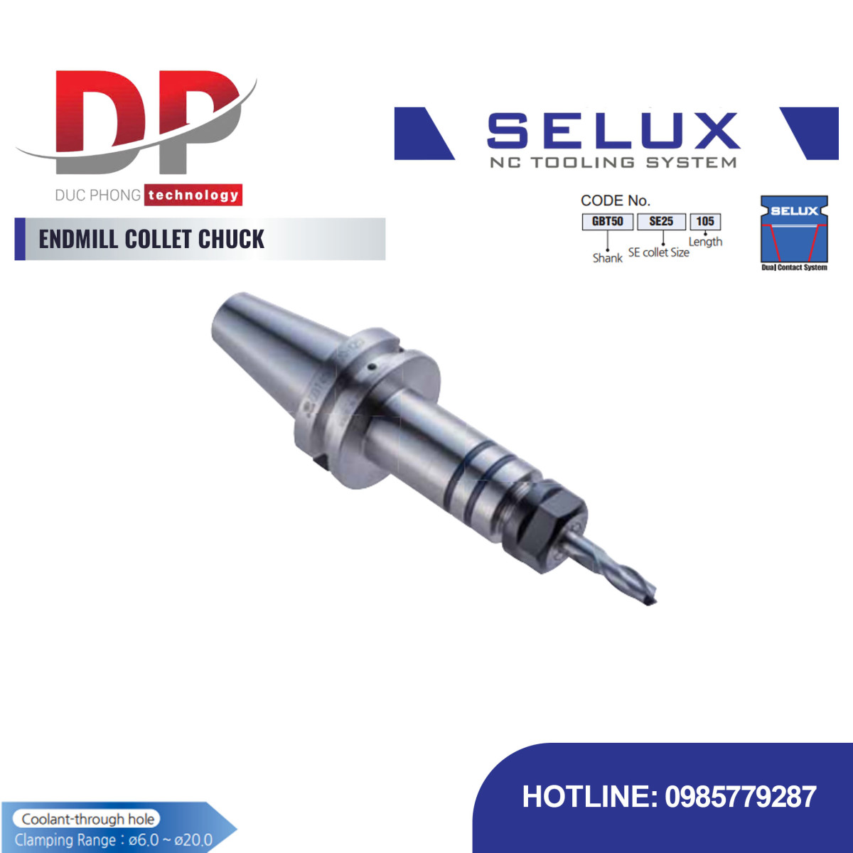 Bầu kẹp dao phay Collet Series GBT Shank - Selux là loại đầu kẹp chuyên dụng, được thiết kế để kẹp chặt dao phay ngón hiệu quả chính xác. Sản phẩm này dùng loại collet chuyên biệt SE Collet và có khả năng chống rung tốt, đảm bảo chất lượng khi gia công.