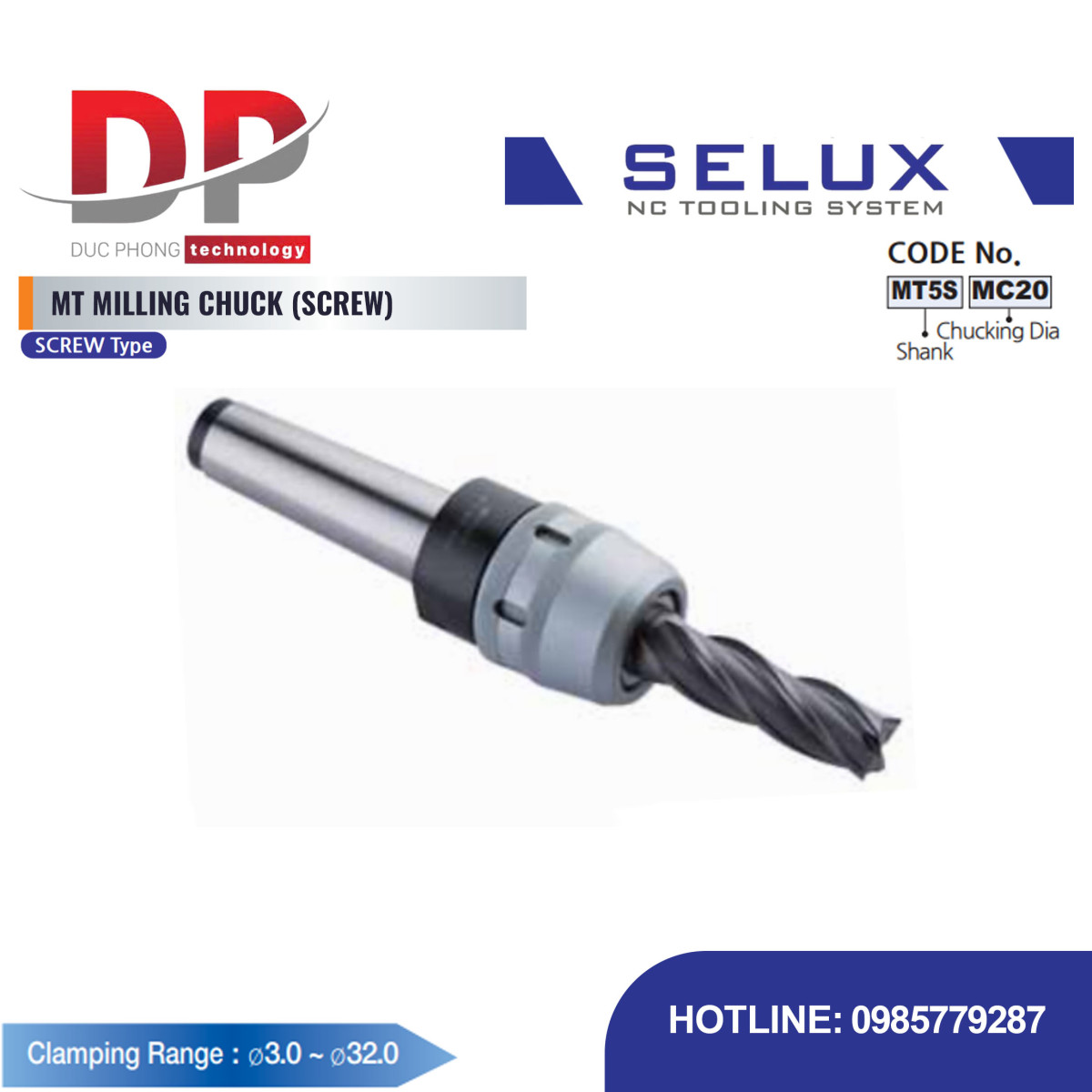 Bầu kẹp dao phay MT côn Morse SCREW Series NT/MT Shank - Selux (MT MILLING CHUCK SCREW) là loại đầu kẹp cơ học có hiệu suất cao, sử dụng cơ chế con lăn kim để kẹp dụng cụ cắt. Sản phẩm được thiết kế để lắp đặt trên các máy công cụ có giao diện trục chính Côn Morse (MT) có ren .