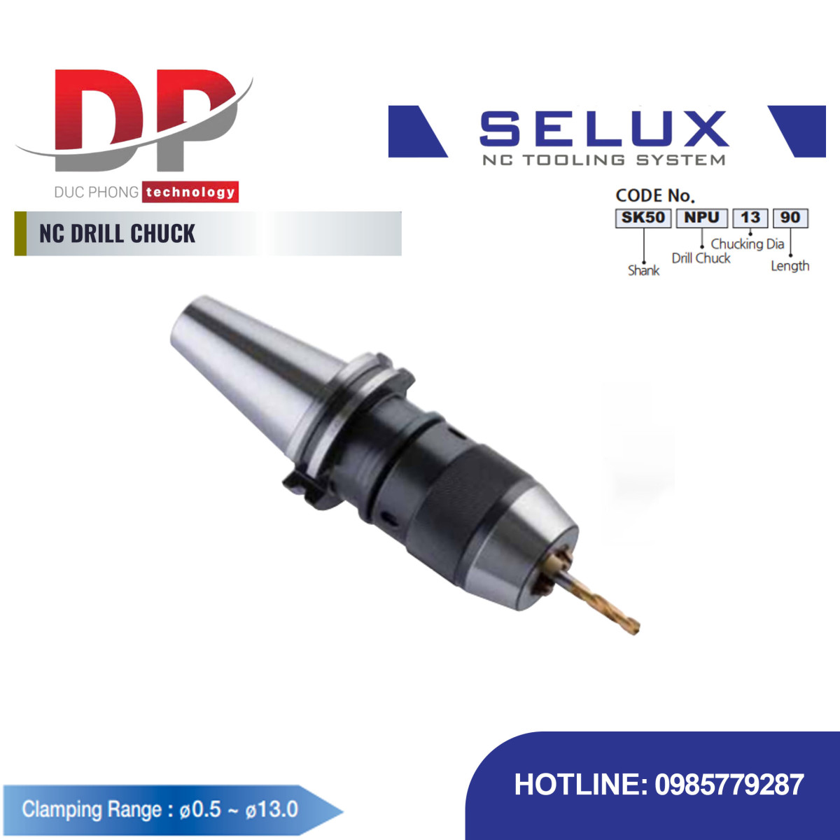 Bầu kẹp mũi khoan NC Series SK Shank - Selux (NC DRILL CHUCK) là loại đầu kẹp chuyên dụng, dùng cho các công việc khoan thông thường trên , được thiết kế với độ cứng vững cao và lắp đặt vào máy CNC thông qua chuôi SK Shank.