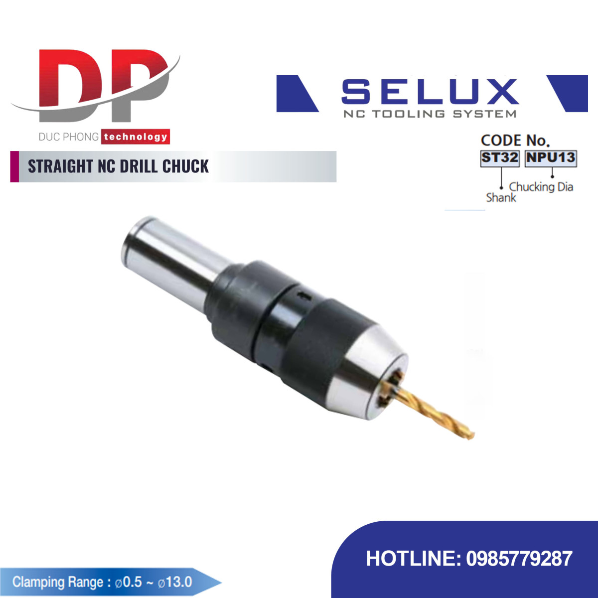 Bầu kẹp mũi khoan NC thẳng Series ST Shank - Selux (STRAIGHT NC DRILL CHUCK) là một dụng cụ gá kẹp mũi khoan chính xác, được thiết kế chuyên biệt để sử dụng trong các trung tâm gia công.