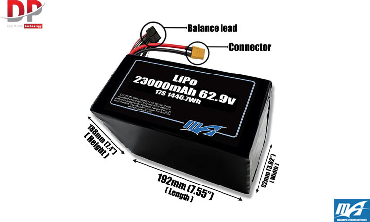 Bộ pin LiPo 23000mAh 17S 62.9V - MaxAmps là dòng pin lithium polymer hiệu suất cao, được thiết kế để đáp ứng nhu cầu năng lượng mạnh mẽ và ổn định cho các thiết bị công suất lớn. Với dung lượng 23000mAh và điện áp 62.9V, sản phẩm này mang lại thời gian hoạt động lâu dài, khả năng xả dòng cao, phù hợp với các ứng dụng như máy bay không người lái (UAV), xe điện, robot công nghiệp và hệ thống lưu trữ năng lượng di động. Cùng Đức Phong Store tìm hiểu chi tiết dưới đây nhé!