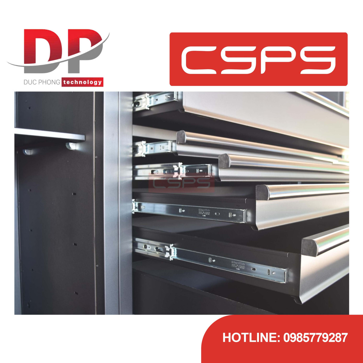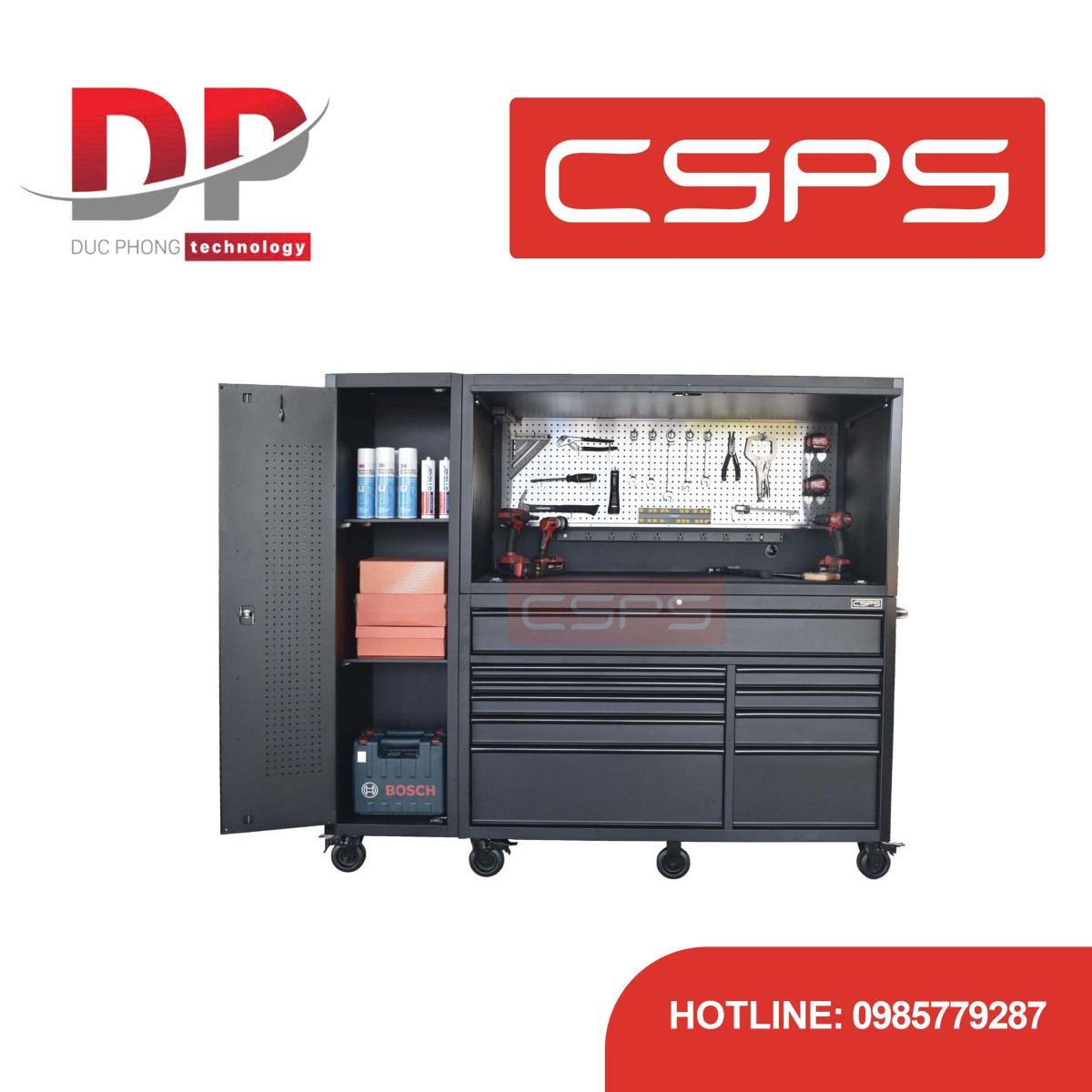 Bộ tủ dụng cụ CSPS 203cm 10 hộc kéo màu đen bóng là hệ thống lưu trữ dụng cụ chuyên dụng cho xưởng cơ khí, garage, nhà máy, cửa hàng sửa chữa và khu bảo trì kỹ thuật, được thiết kế để tối ưu sắp xếp, truy cập và bảo quản công cụ một cách khoa học và hiệu quả. Sản phẩm thuộc dòng tool cabinet cao cấp của CSPS, đạt tiêu chuẩn Mỹ về chất lượng và độ bền với khung thép chắc chắn và sơn tĩnh điện màu đen bóng bền bỉ giúp chống ăn mòn, trầy xước và chịu va đập trong môi trường làm việc nặng.