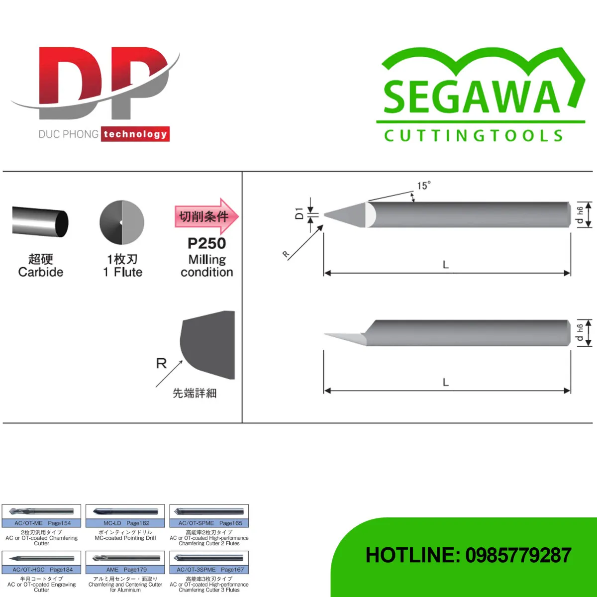 Dao phay khắc HGC Carbide 1 me - Segawa là dao phay chuyên dùng để khắc. Dao được chế tạo từ Carbide, chỉ có 1 me cắt và không có lớp phủ.