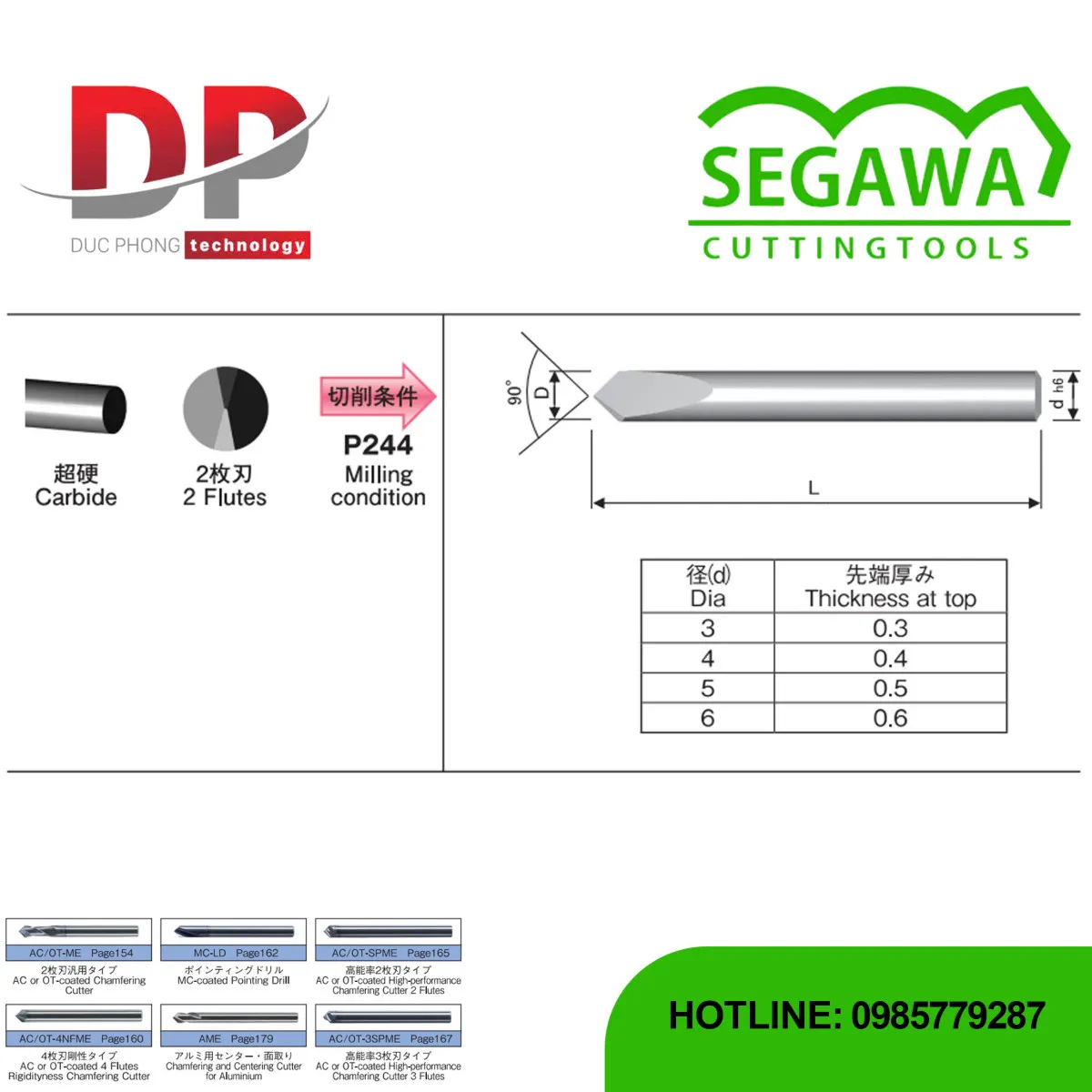 Dao phay lấy dấu tâm CME Carbide 2 me - Segawa là một loại dao phay/cắt chuyên dụng để lấy dấu tâm, được chế tạo từ Carbide, có 2 me cắt và không có lớp phủ.