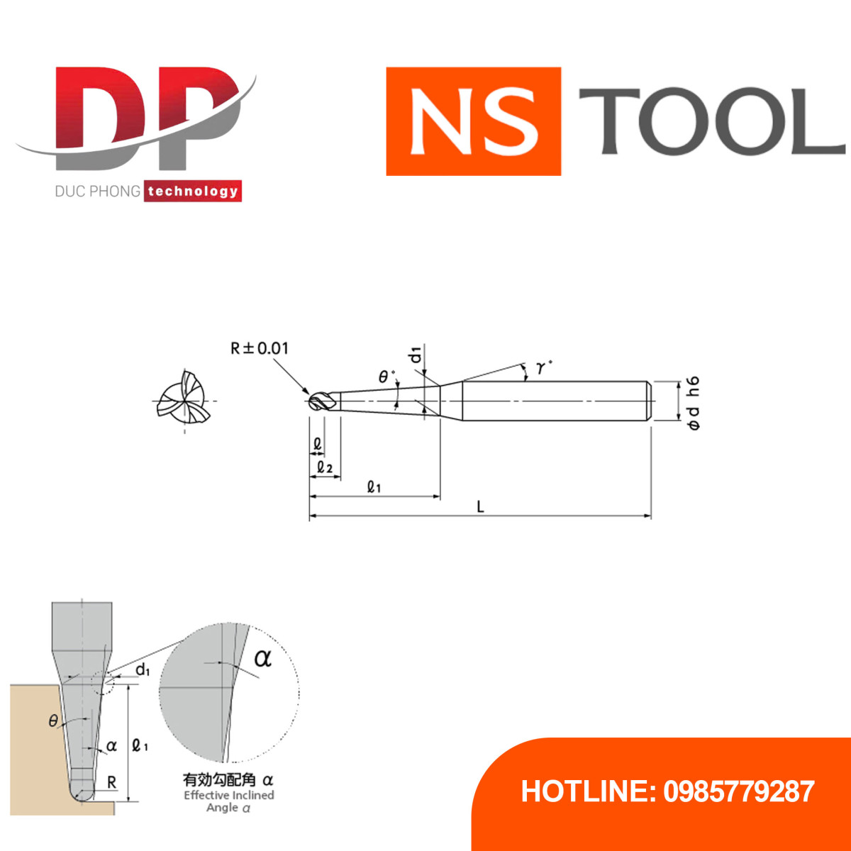 Dao phay cầu cổ taper MRBTNH345 thuộc dòng MUGEN COATING PREMIUM của NS TOOL, được phát triển để gia công thép đã qua tôi với độ cứng cao, kết hợp độ cứng vững tối ưu nhờ thiết kế cổ taper. Lớp phủ MUGEN COATING PREMIUM tăng khả năng chịu nhiệt, kéo dài tuổi thọ dao ngay cả trong điều kiện gia công khắc nghiệt. Thiết kế 3 me cắt nguyên bản của NS tối ưu hóa khả năng gia công hiệu quả, đặc biệt cho các chi tiết 3D phức tạp.