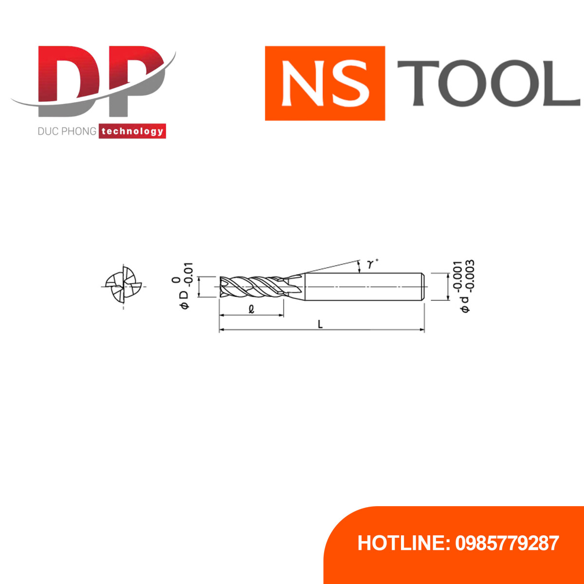 Dao phay MUGEN COATING PREMIUM 4-Flute High Efficient "Z" End Mill for Stainless Steels – MSUSZ440 của NS TOOL được thiết kế đặc biệt cho gia công thép không gỉ với hiệu suất và độ ổn định cao. Cấu trúc bất đối xứng rãnh cắt và góc xoắn không đều, kết hợp với hình dạng đầu dao cứng vững, giúp giảm rung động, nâng cao độ chính xác và tăng năng suất cắt.