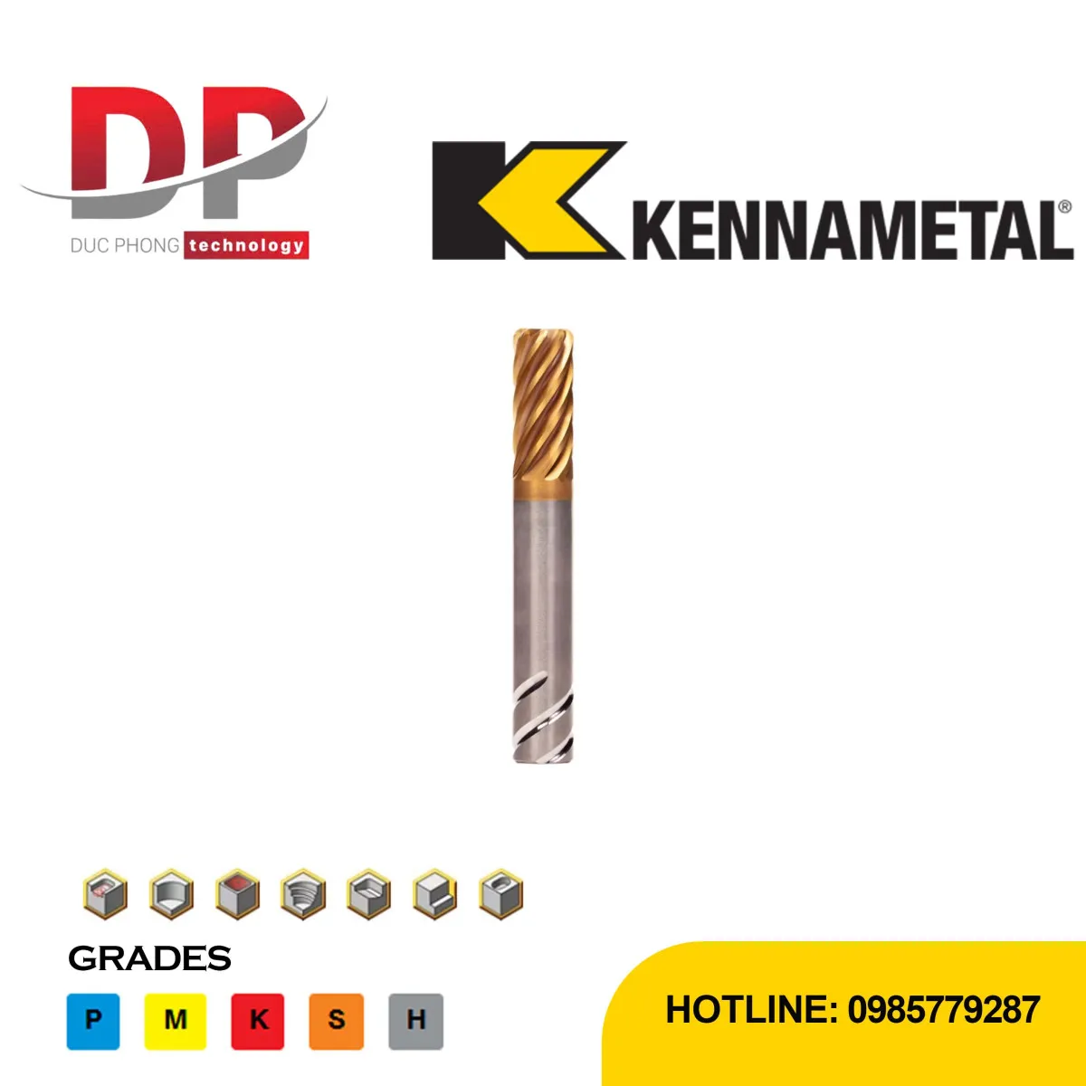 Đánh giá Dao phay ngón carbide Kennametal HARVI™ IV, 8 me, làm mát trong, chipbreaker, cán Safe-Lock™, hệ mét