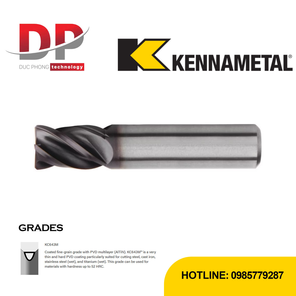 Đánh giá Dao phay ngón Carbide Kennametal GOmill, 4 me – vát mép – Hệ mét