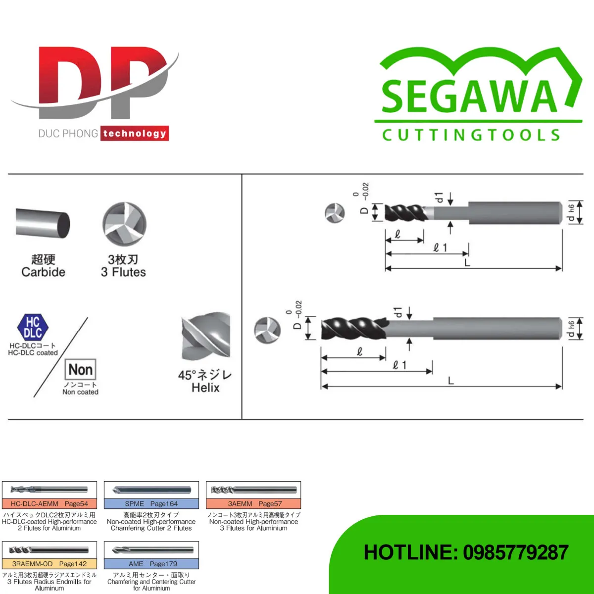 Dao phay ngón HC-DLC-NEC-3AEMM-OD và NEC-3AEMM-OD cổ dài Carbide 3 me - Segawa là dòng dao phay ngón hiệu suất cao và chuyên dụng cho hợp kim nhôm và hợp kim đồng, được thiết kế đặc biệt để gia công các chi tiết có hốc sâu nhờ cấu trúc cổ giảm.