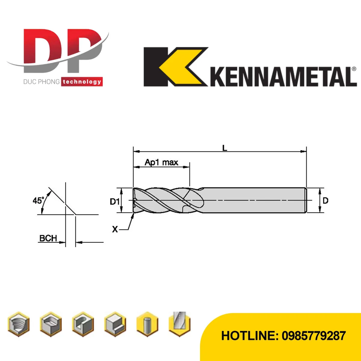 Đánh giá Dao phay ngón Kennametal GOmill™ Pro – 4 me – vát mép – hệ mét