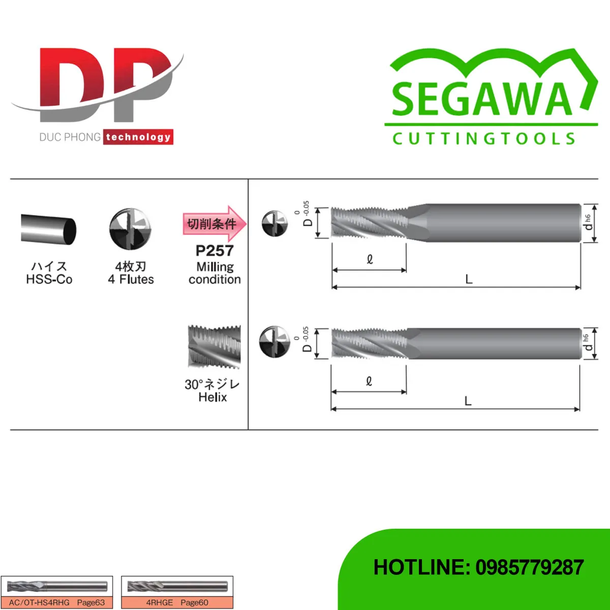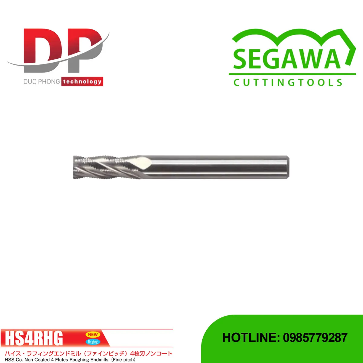 Dao phay ngón thô HS4RHG HSS-Co 4 me không phủ - Segawa là dòng dao phay ngón thô chế tạo từ HSS-Co. Dao có thiết kế 4 me cắt và góc xoắn 30°. Dao phay HS4RHG có thiết kế bước răng mịn. Nó phù hợp cho việc phay thô đến bán tinh các loại vật liệu như thép carbon, thép hợp kim, thép không gỉ, và hợp kim nhôm/đồng.