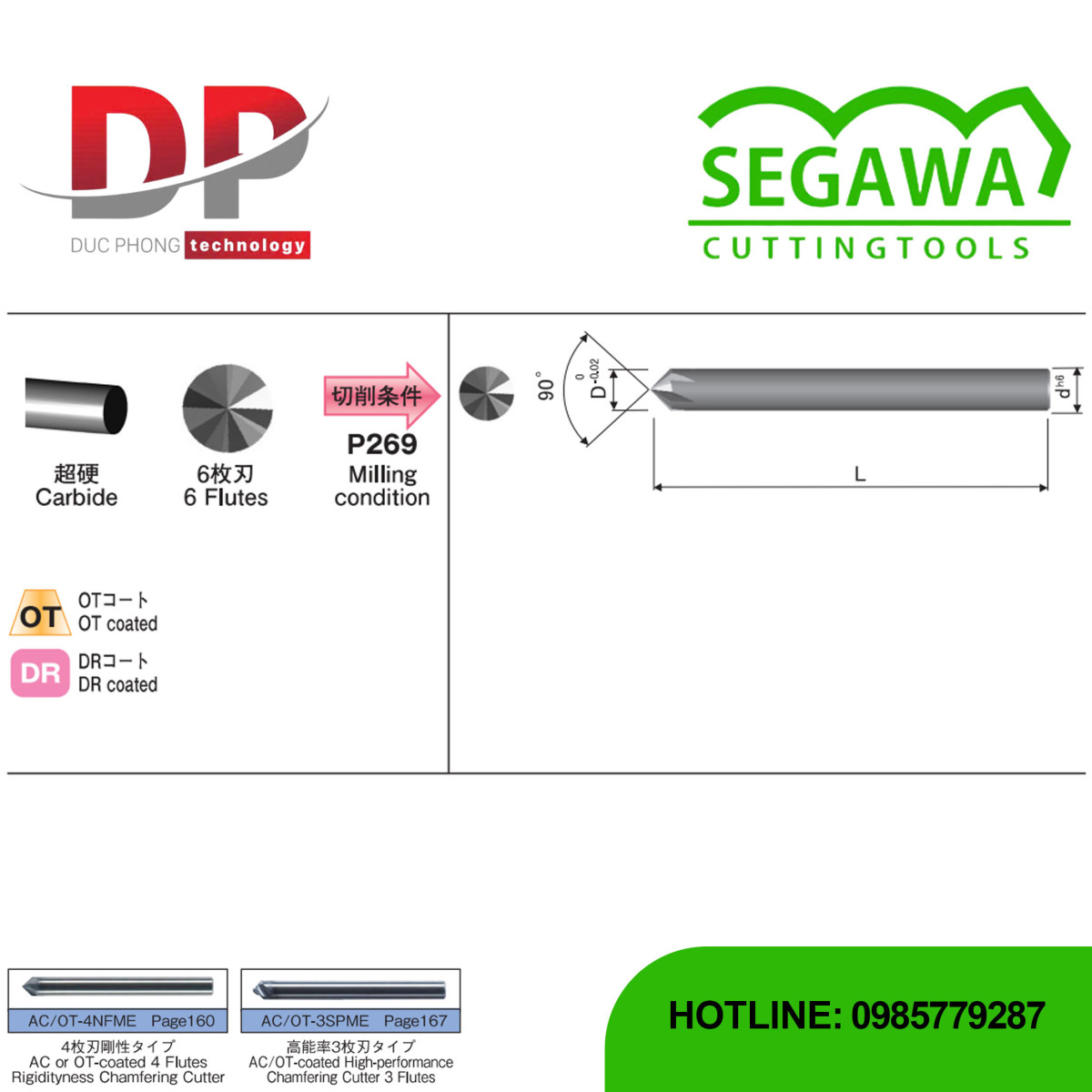 Dao phay vát rãnh OT-6NFME và DR-6NFME Carbide 6 me - Segawa được thiết kế chuyên dụng cho việc gia công thép có độ cứng cực cao, kết hợp vật liệu Carbide và các lớp phủ hiệu suất cao OT/DR của Segawa.