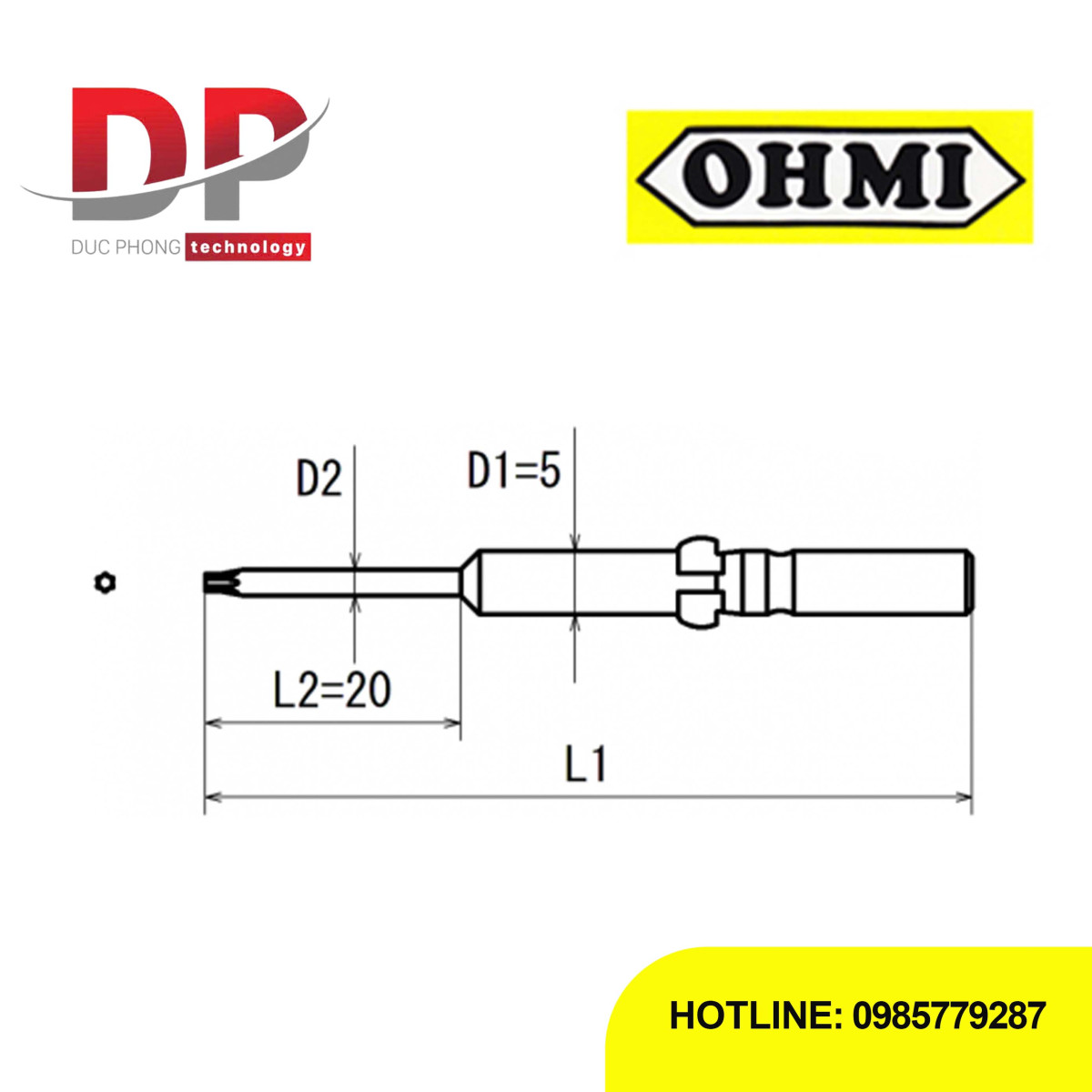 Đường kính thân dưới (D2): 3mm.