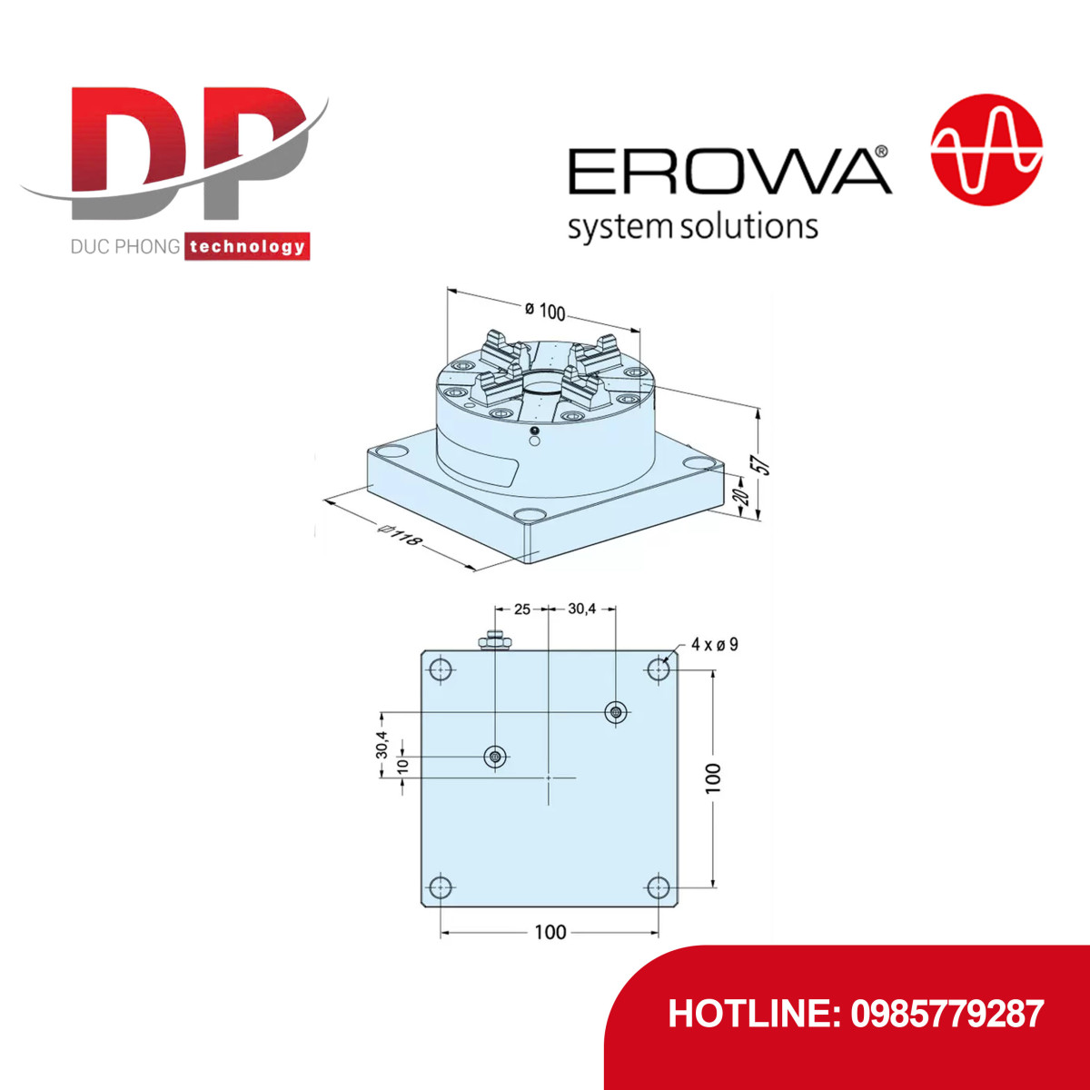Kích thước tấm cơ sở: 118 x 118 mm.