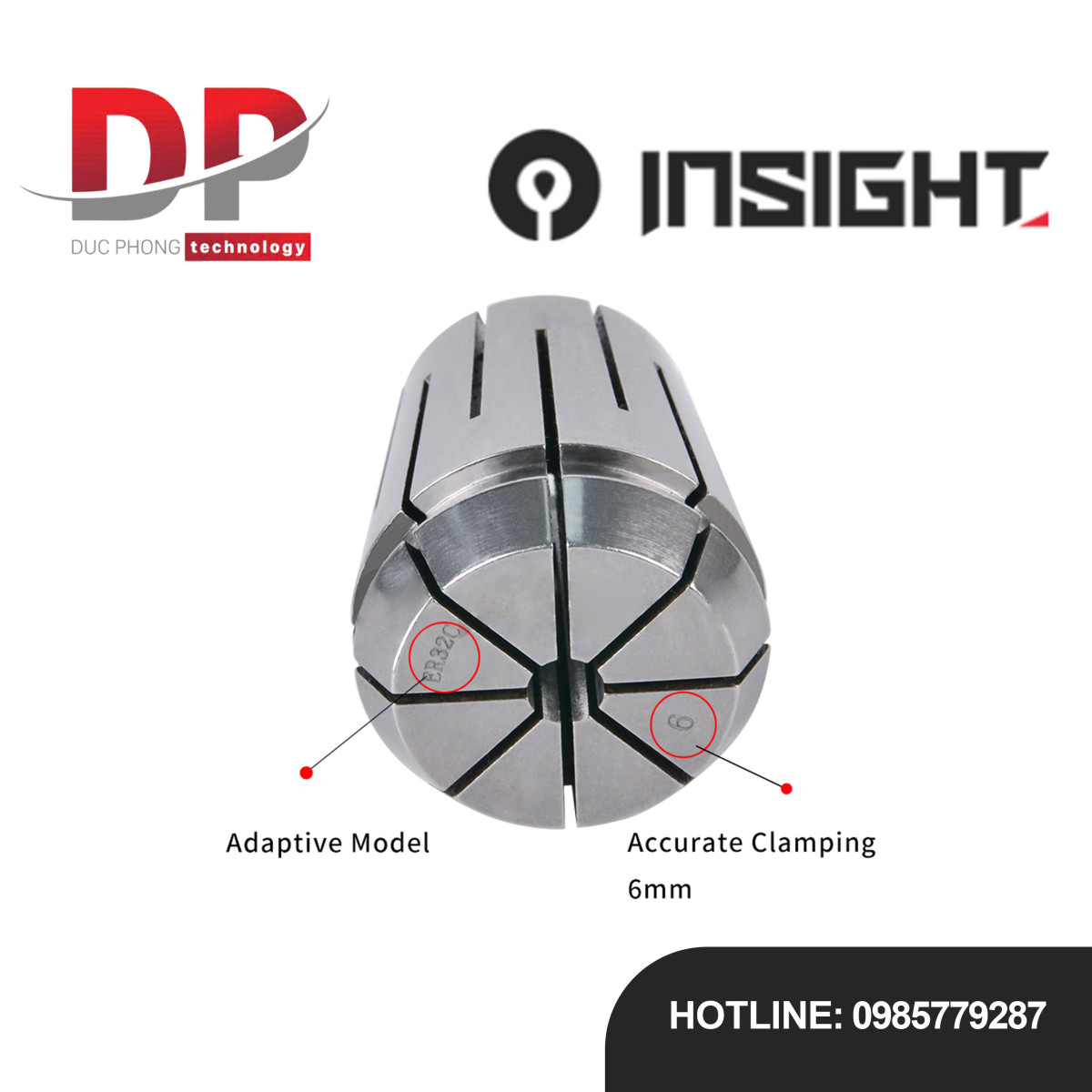 Mã sản phẩm (Designation): ER11/16/20/25/32/-DM Collet