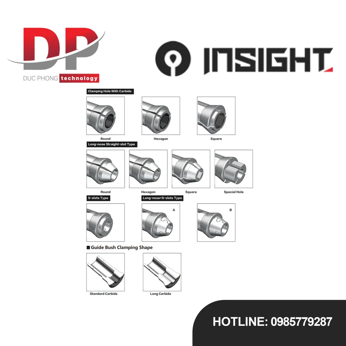 Tùy chọn thiết kế lòng Đầu kẹp: Có sẵn các tùy chọn lòng trơn (Smooth) và lòng có rãnh (Grooved), cùng với các kiểu Đầu kẹp S-slots, mũi dài S-slots, Mũi dài hợp kim (Long Carbide) để đáp ứng các yêu cầu kẹp đặc biệt.