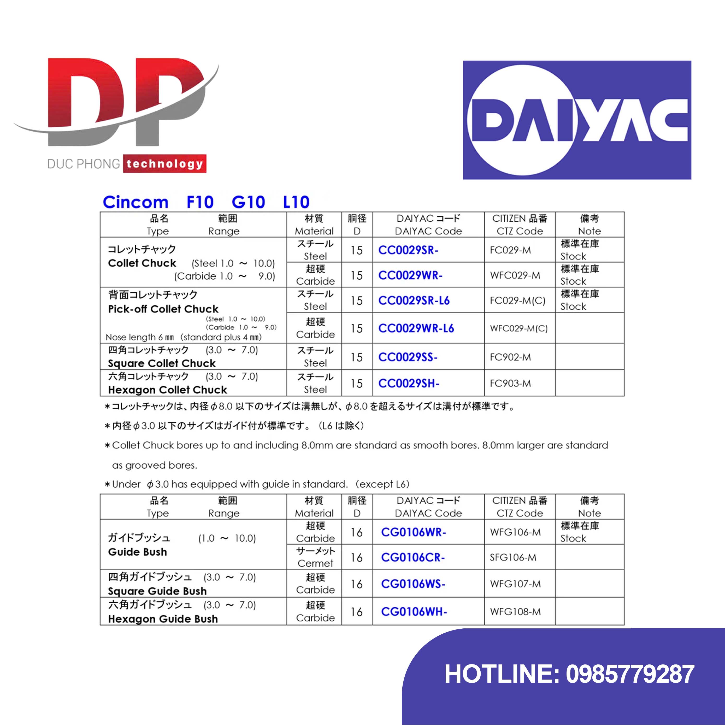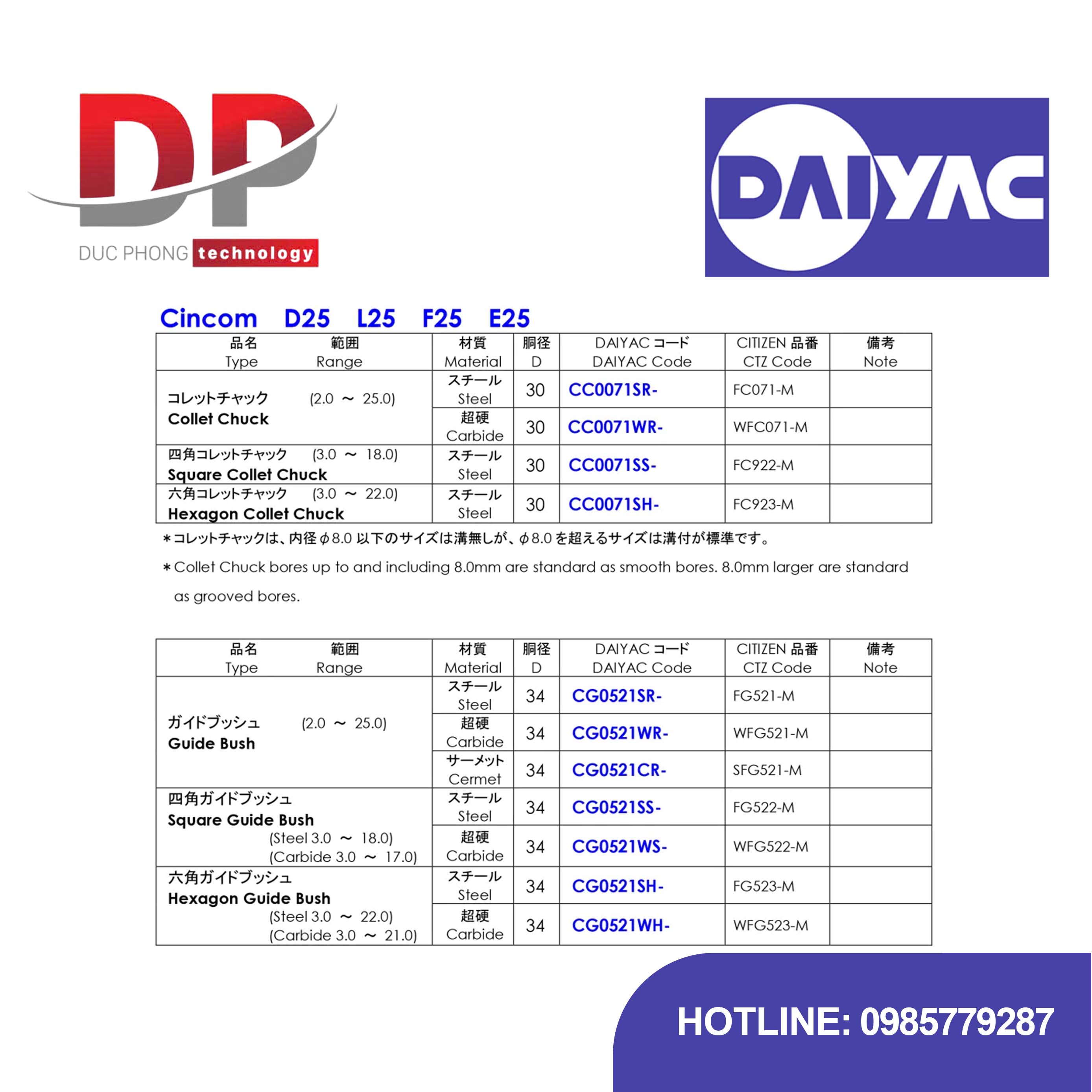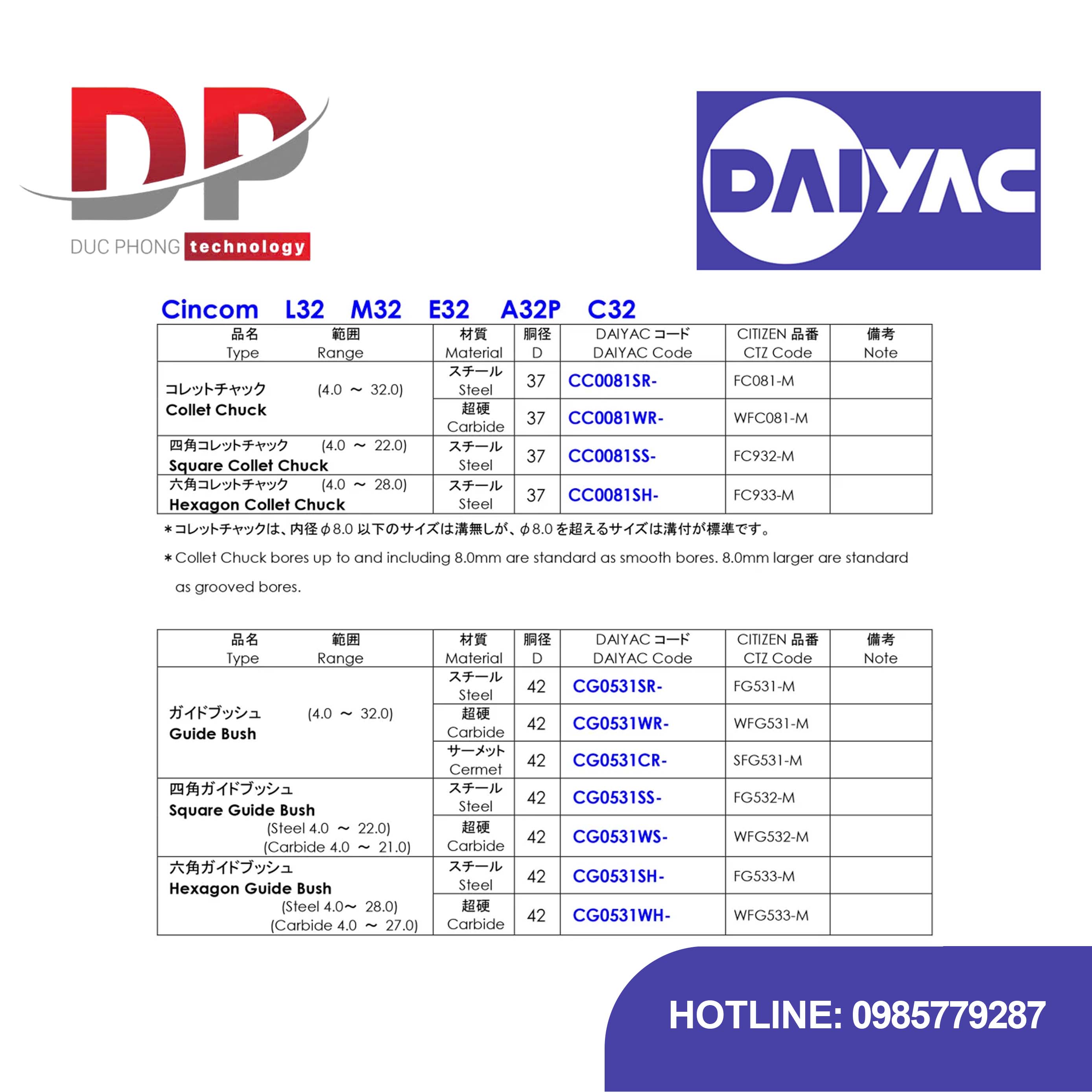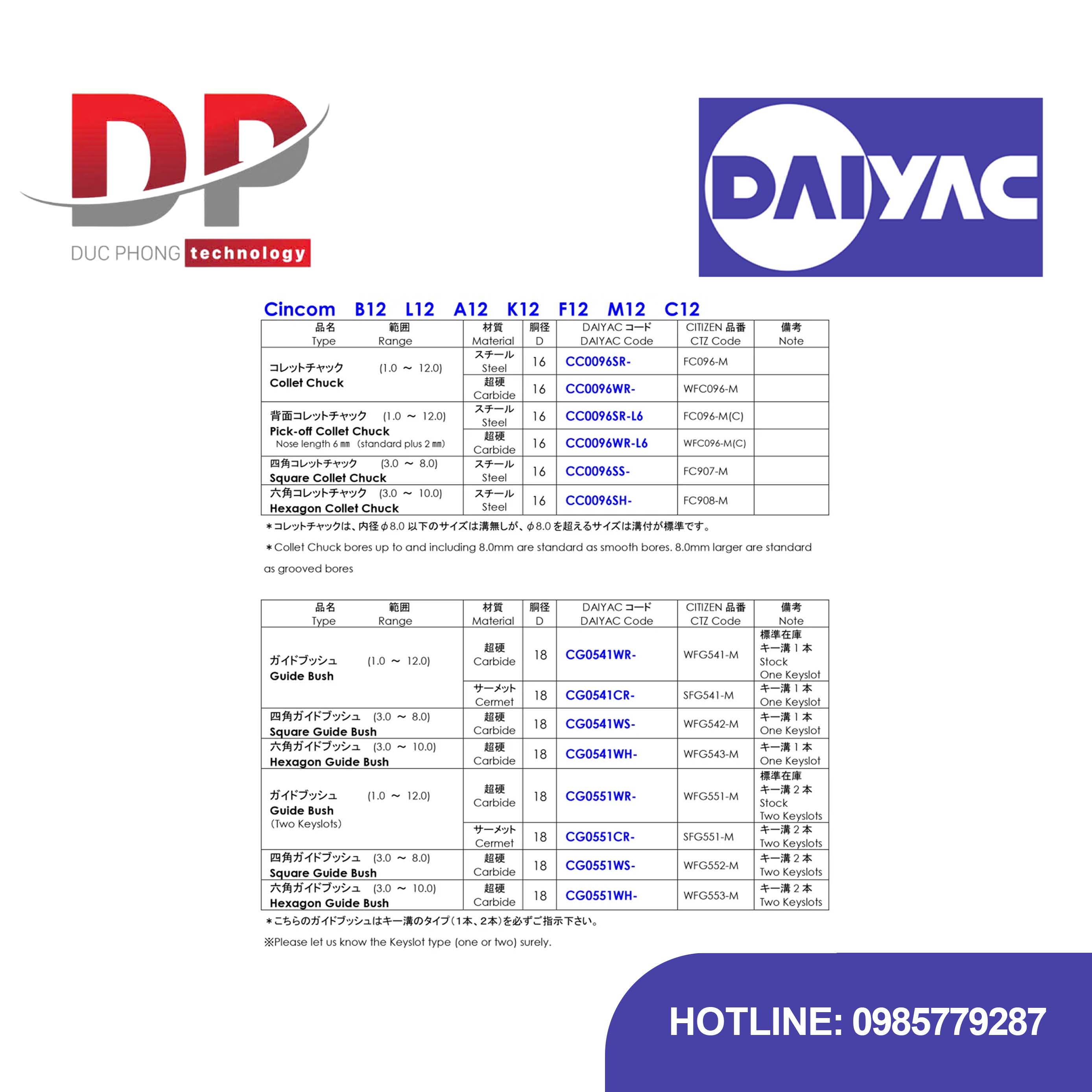 Đánh giá Đầu kẹp và Ống dẫn hướng DAIYAC cho máy tiện CITIZEN Cincom