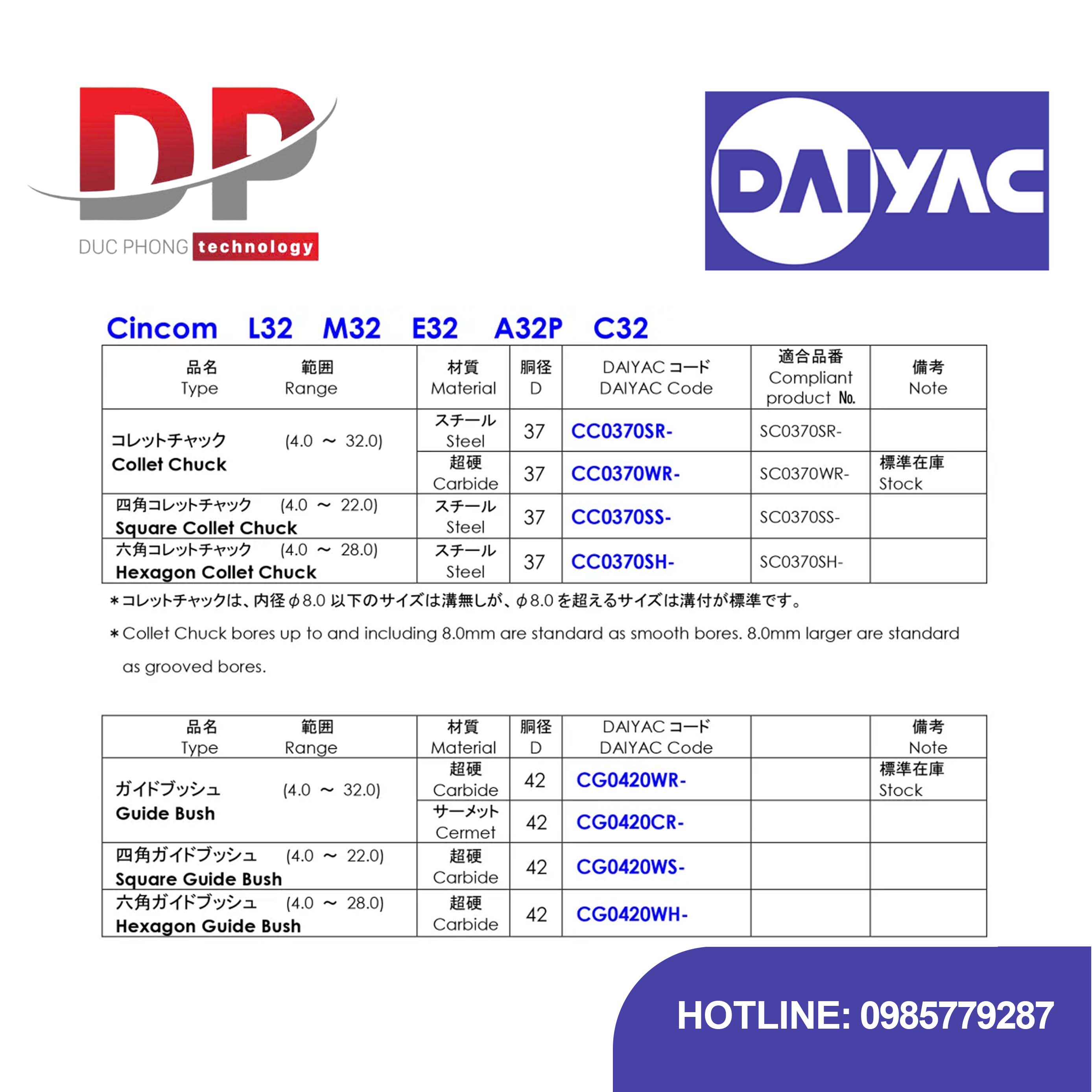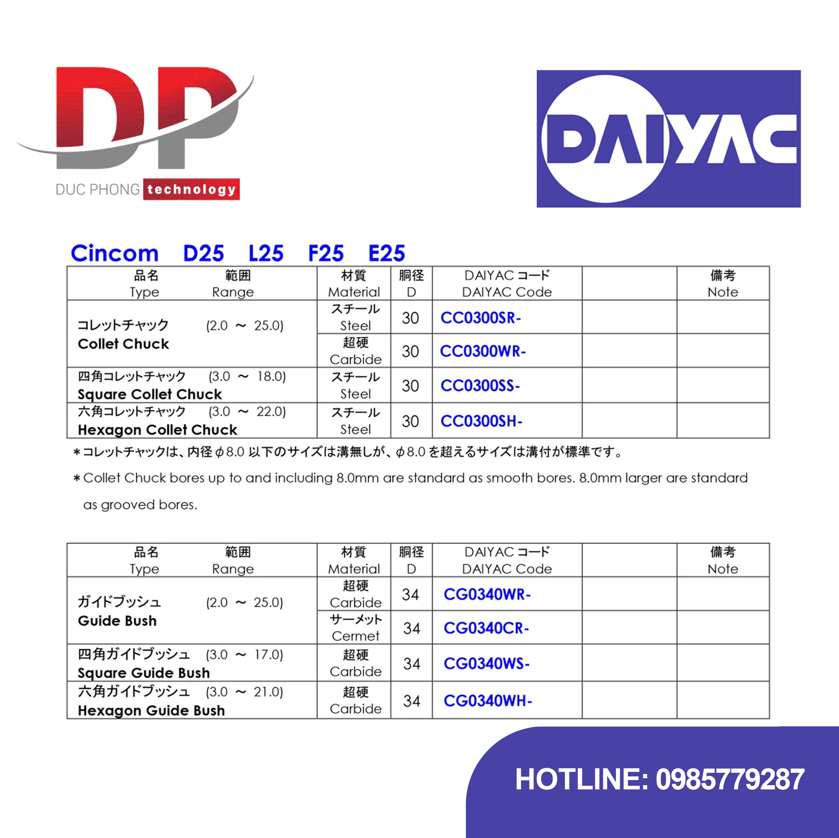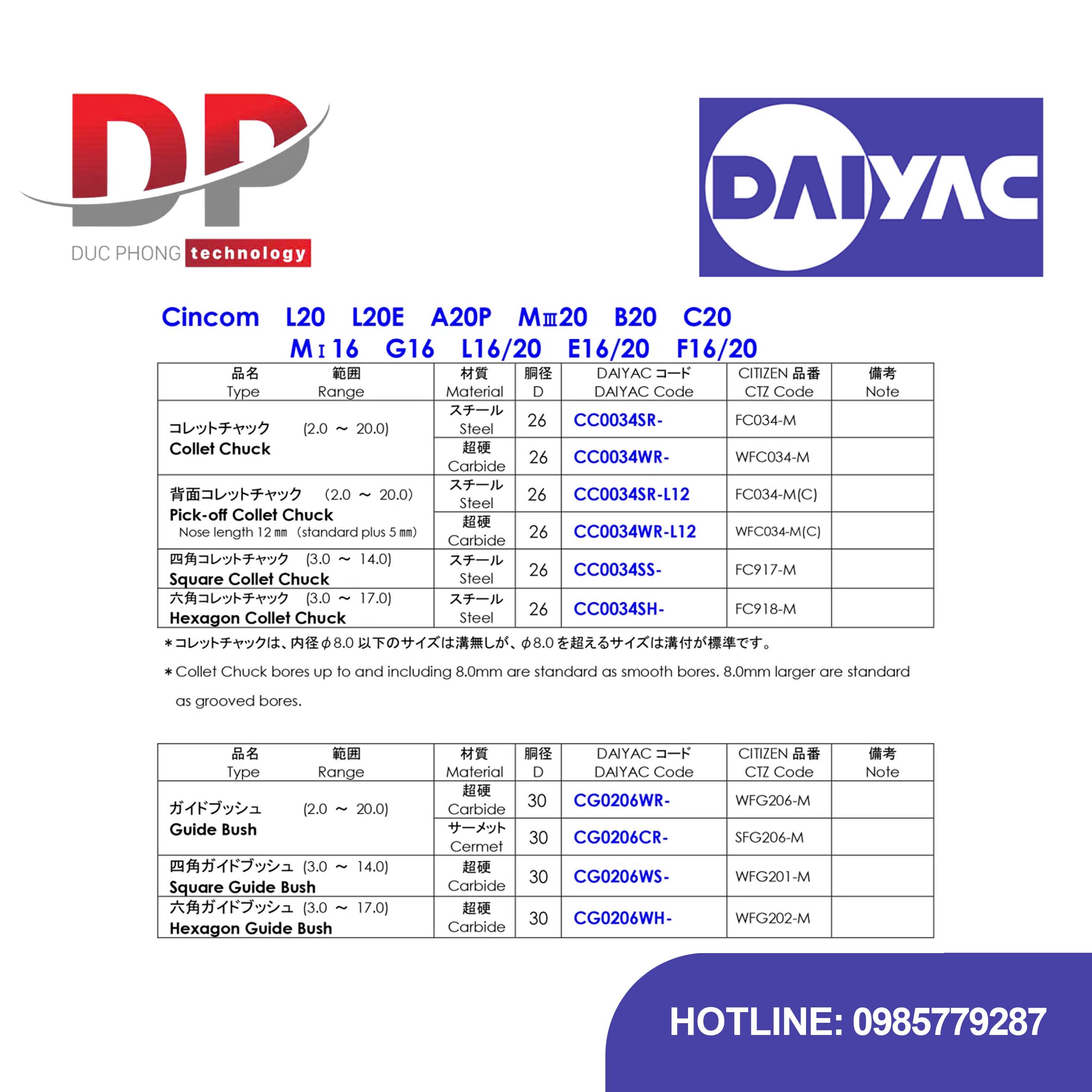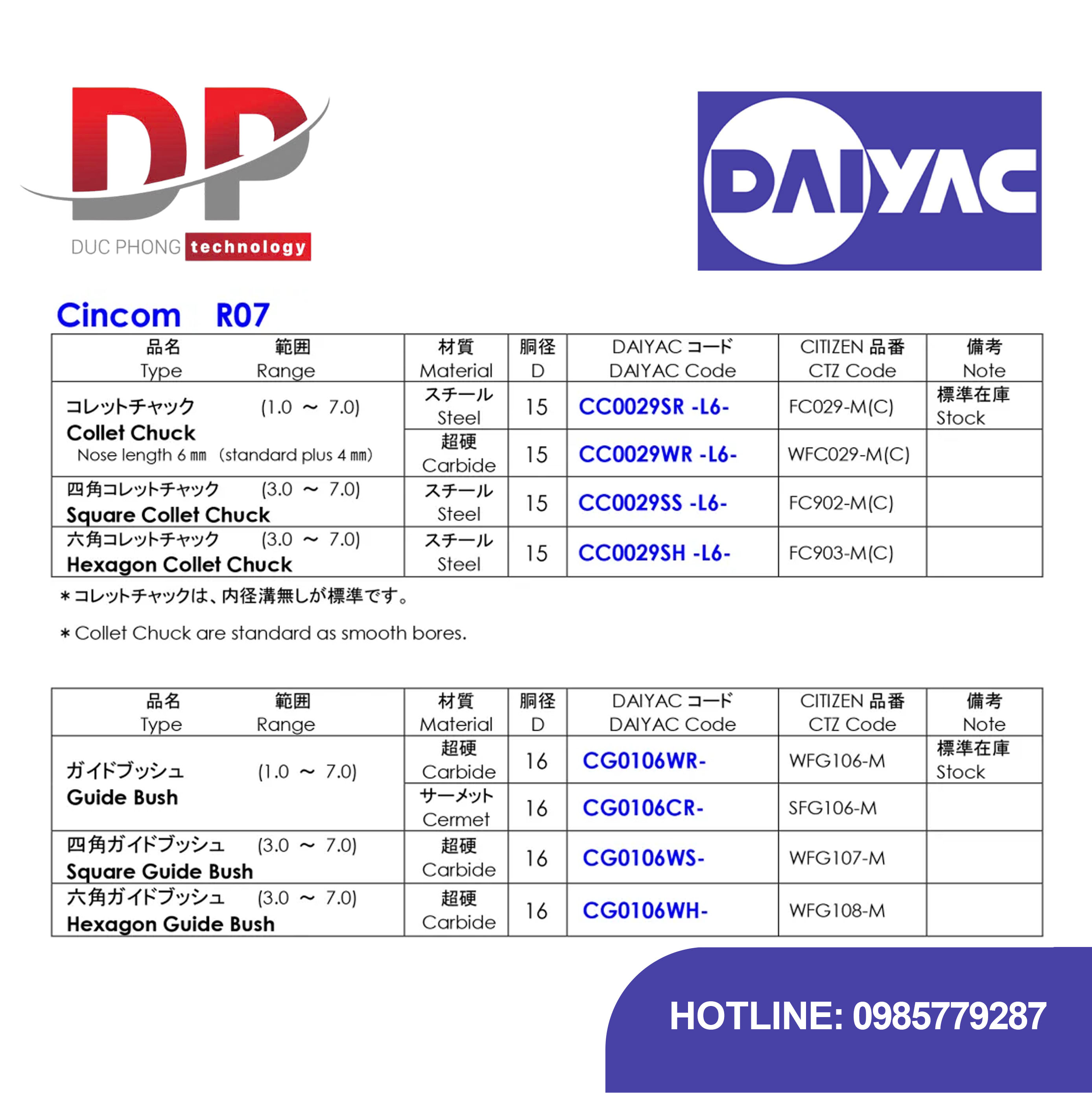 Đánh giá Đầu kẹp và Ống dẫn hướng DAIYAC cho máy tiện CITIZEN Cincom