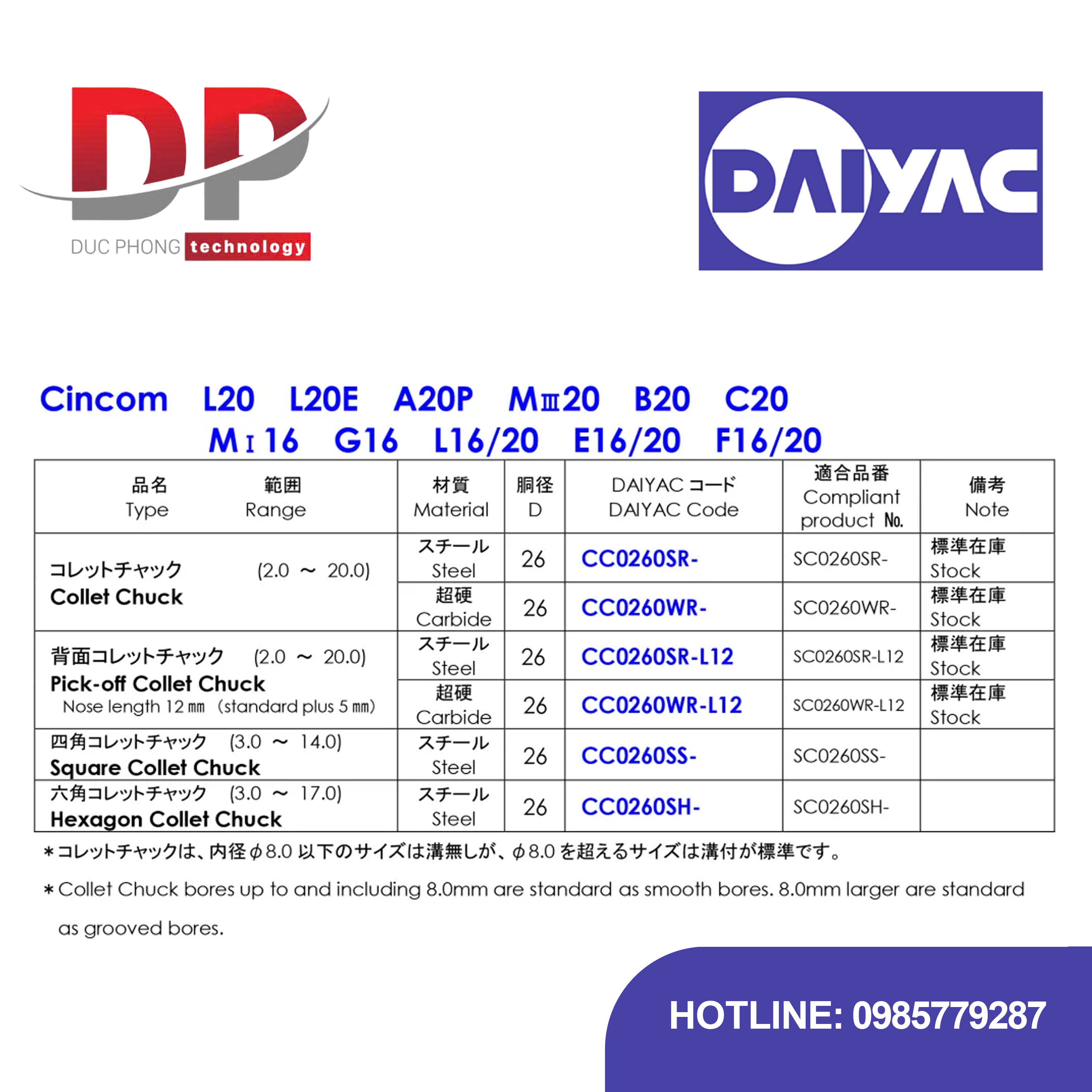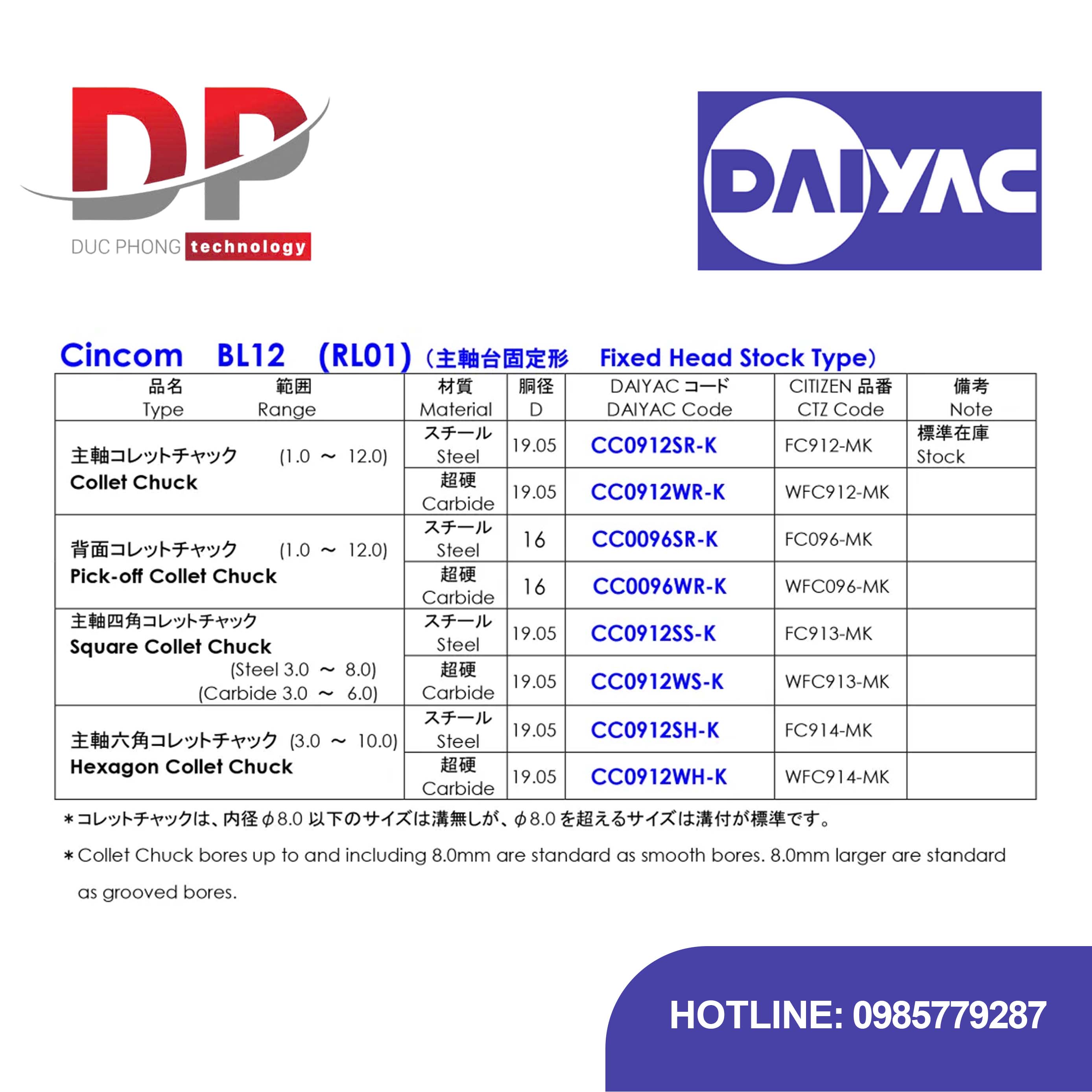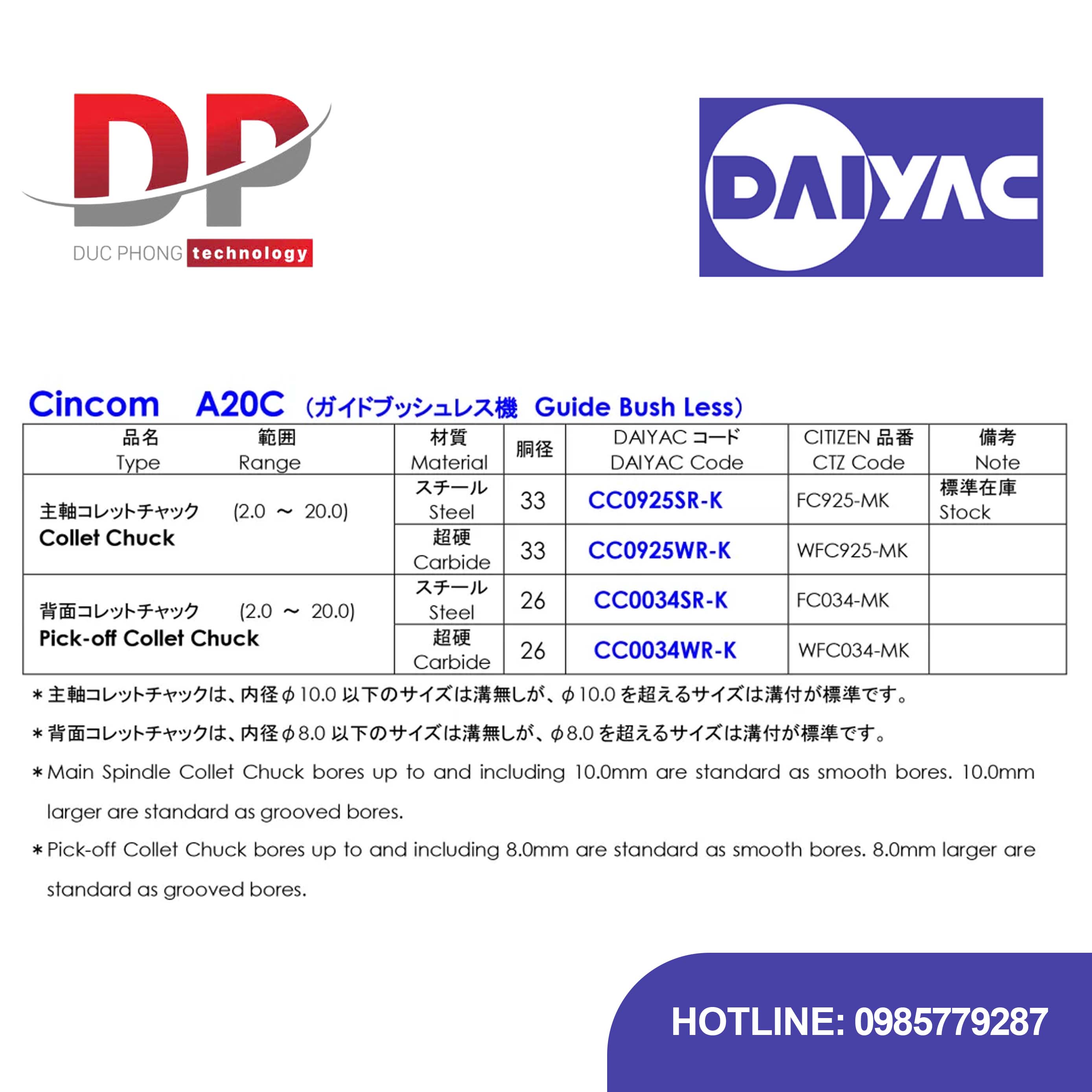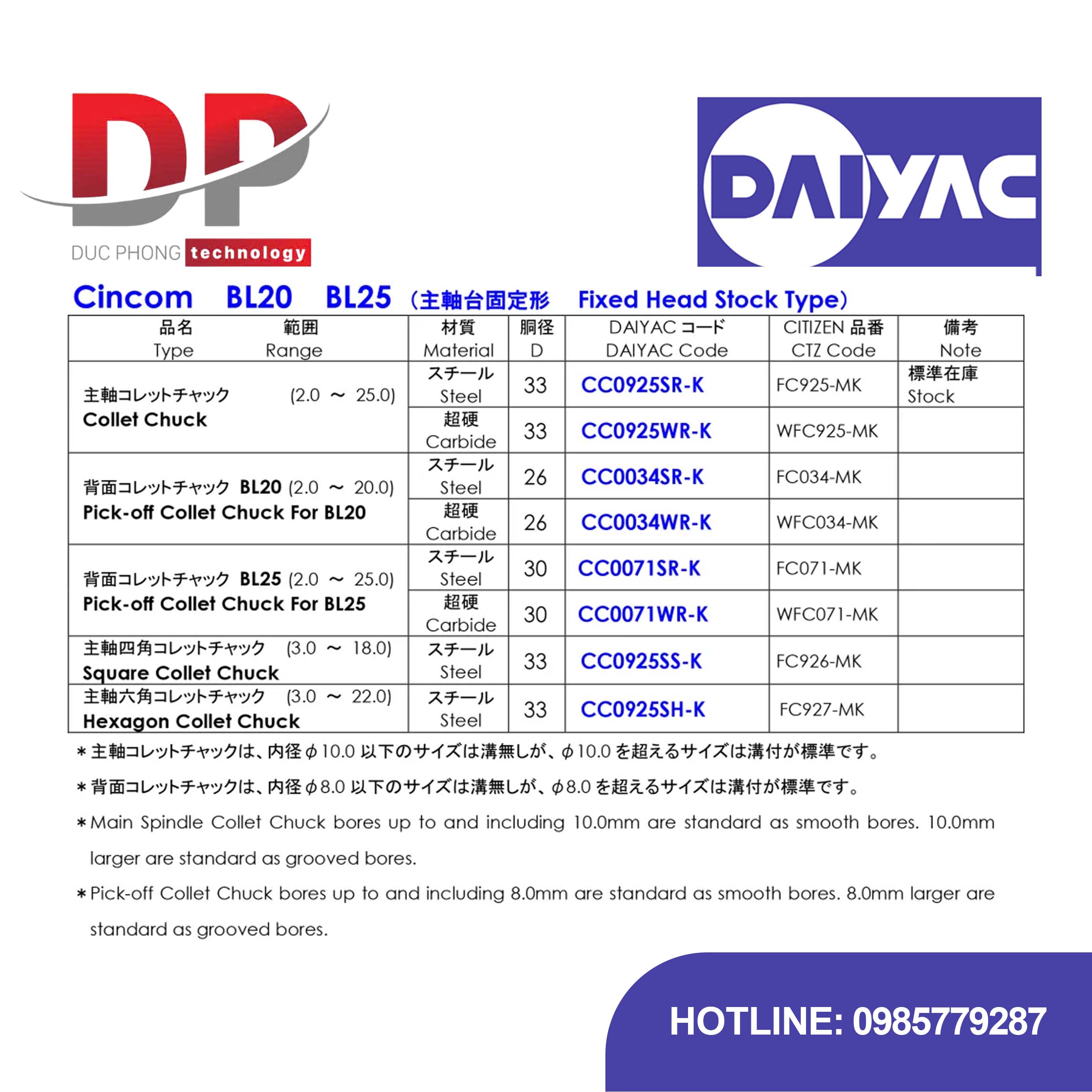 Đánh giá Đầu kẹp và Ống dẫn hướng DAIYAC cho máy tiện CITIZEN Cincom