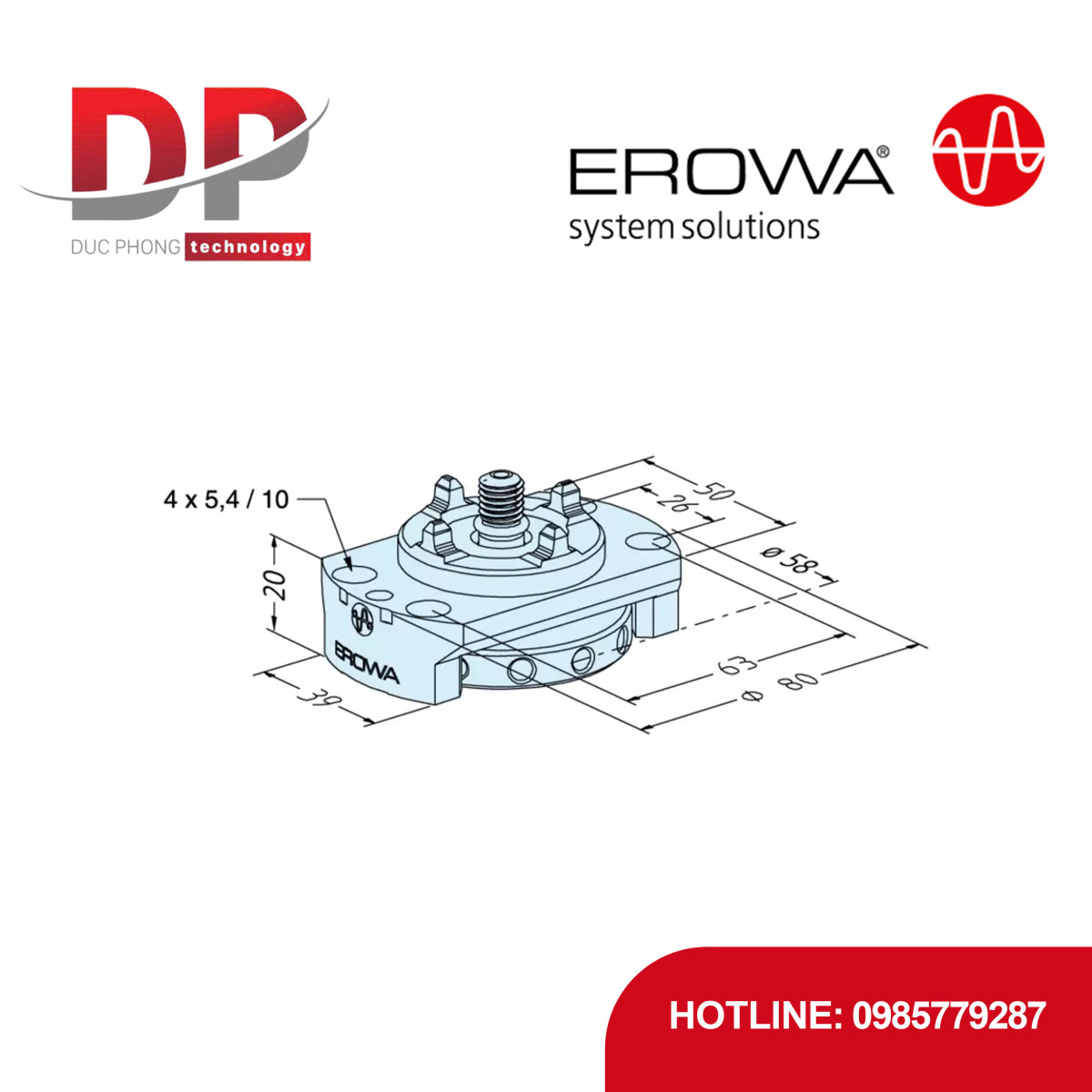 Đánh giá Đầu kẹp vít EROWA ER-007697 50 D, chiều cao 20 mm, hệ thống 50