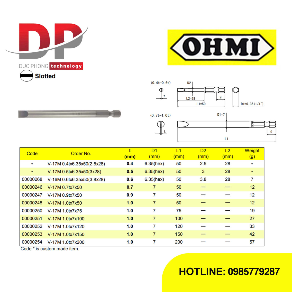 Đánh giá Đầu vặn ốc 2 cạnh OHMI V-17M 0.4tx6.35×50(2.5×28)