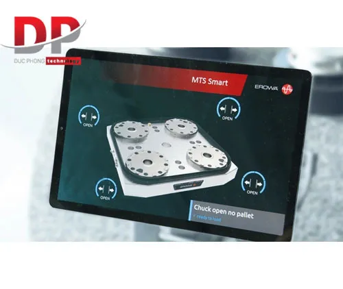 Tự động hóa: Hệ thống MTS rất phù hợp cho việc thay đổi pallet tự động. Khi thay đổi phôi, bề mặt tiếp xúc của mâm cặp và đầu kẹp được làm sạch tự động, đảm bảo định vị gọn gàng và chính xác.