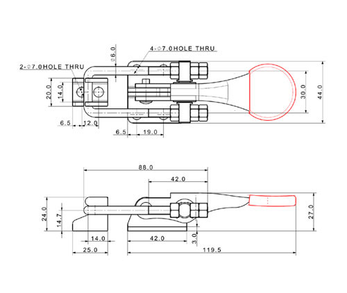 Cơ chế kẹp móc (Latch Type): Kẹp hoạt động bằng cách một móc kẹp (hook) sẽ bám vào một chốt (catch plate) cố định. Cơ chế này rất hiệu quả để giữ chặt hai bộ phận với nhau (ví dụ: nắp hộp với thân hộp, cửa với khung), tạo ra lực căng và khóa chặt.