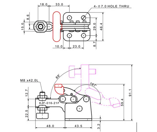 Kẹp gạt loại ngang có mặt đế KJF-016-21F là một thành viên trong dòng sản phẩm kẹp nhanh (toggle clamp) chất lượng cao của KJF. Được thiết kế chuyên biệt cho các ứng dụng công nghiệp yêu cầu lực kẹp lớn hơn và độ ổn định cao, sản phẩm này lý tưởng để cố định các chi tiết trong quá trình gia công, lắp ráp hoặc kiểm tra, đặc biệt là các vật liệu có kích thước và trọng lượng lớn hơn.