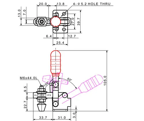 Kẹp gạt loại thẳng có mặt đế KJF-009-11FS là một sản phẩm chất lượng cao thuộc dòng kẹp nhanh (toggle clamp) của thương hiệu KJF (Hàn Quốc). Được thiết kế để cung cấp lực kẹp 90kg, kết hợp với thiết kế thẳng đứng và chất liệu thép không gỉ, chiếc kẹp này là lựa chọn lý tưởng cho các ứng dụng công nghiệp yêu cầu độ bền cao, khả năng chống ăn mòn và gá kẹp linh hoạt cho các chi tiết có kích thước vừa phải.