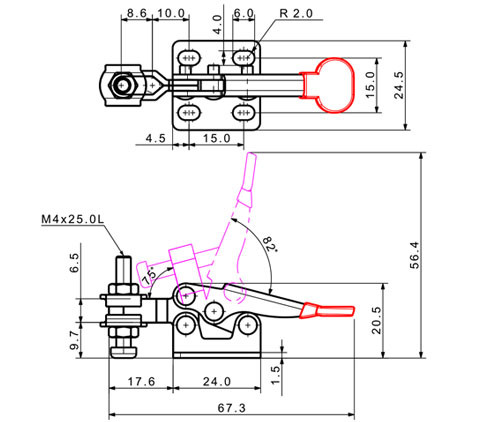Thiết kế loại ngang: Khi kẹp ở vị trí khóa, tay cầm của kẹp sẽ nằm ngang và song song với mặt đế. Kiểu thiết kế này giúp tiết kiệm không gian chiều cao phía trên kẹp và đặc biệt hữu ích khi cần thao tác trong các khu vực có không gian hẹp hoặc dưới các vật cản.