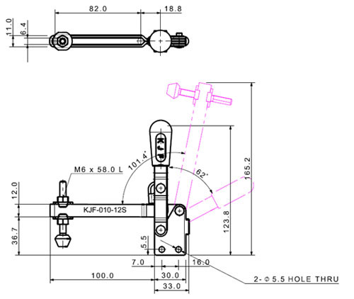 Chân đế vững chắc: Mặc dù không có chữ "F" (Flange) trong mã "12S" bạn cung cấp, các kẹp gạt thẳng của KJF thường có chân đế được thiết kế để dễ dàng lắp đặt cố định trên mặt phẳng bằng vít, đảm bảo sự chắc chắn và ổn định.