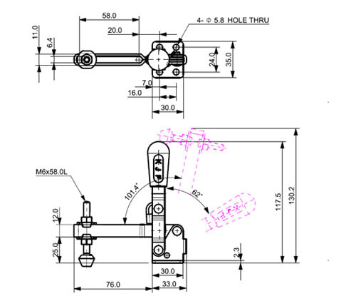 Thiết kế gạt thẳng: Kẹp hoạt động bằng cách đẩy hoặc kéo tay cầm theo một đường thẳng, di chuyển thanh kẹp tới hoặc lui để giữ chặt vật liệu. Thiết kế này lý tưởng cho các ứng dụng cần thao tác nhanh chóng và chính xác theo phương ngang hoặc dọc, đặc biệt khi không gian chiều cao bị giới hạn.