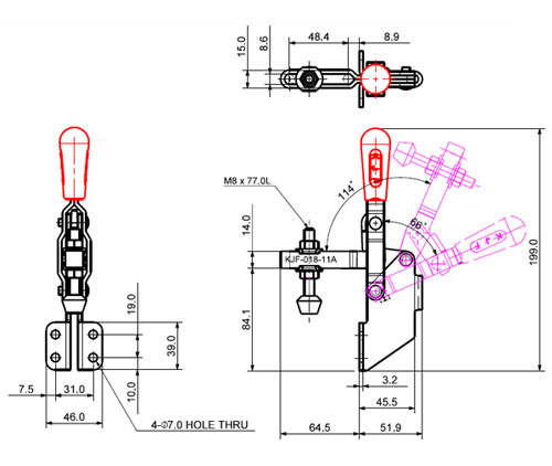 Với lực kẹp 180kg và thiết kế đế góc độc đáo, Kẹp gạt kiểu thẳng đứng đế góc KJF-018-11A lý tưởng cho nhiều ứng dụng công nghiệp, đặc biệt khi cần lắp đặt linh hoạt ở vị trí không gian chật hẹp hoặc góc cạnh: