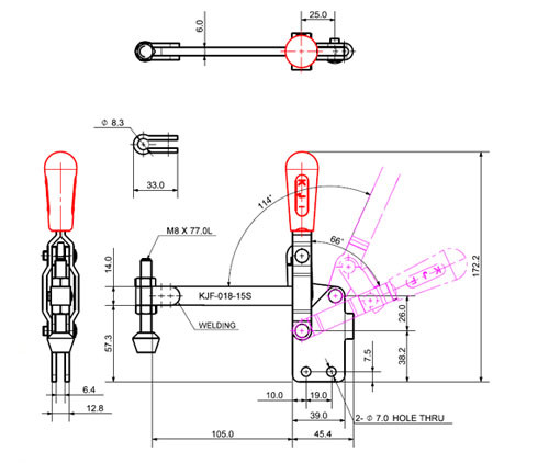 Loại đế: KJF-018-15S có chân đế thẳng (Straight Base), giúp việc lắp đặt kẹp dễ dàng và chắc chắn trên các bề mặt phẳng hoặc thành của đồ gá, đảm bảo sự ổn định và đáng tin cậy khi kẹp chịu tải.