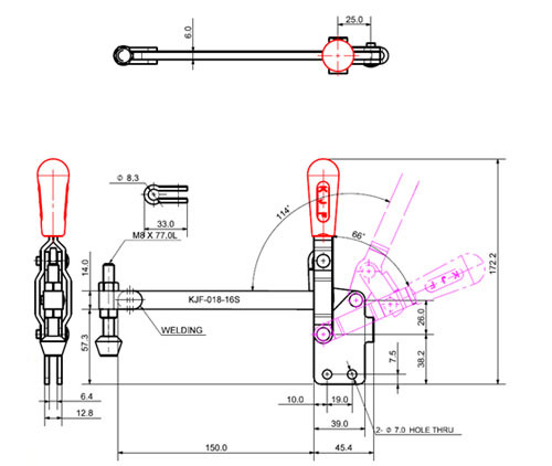 Loại đế: KJF-018-16S có chân đế thẳng (Straight Base), giúp việc lắp đặt kẹp dễ dàng và chắc chắn trên các bề mặt phẳng hoặc thành của đồ gá, đảm bảo sự ổn định và đáng tin cậy khi kẹp chịu tải.