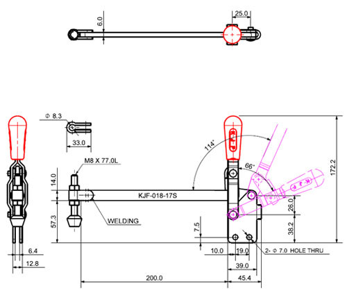 Loại đế: KJF-018-17S có chân đế thẳng (Straight Base), giúp việc lắp đặt kẹp dễ dàng và chắc chắn trên các bề mặt phẳng hoặc thành của đồ gá, đảm bảo sự ổn định và đáng tin cậy khi kẹp chịu tải.