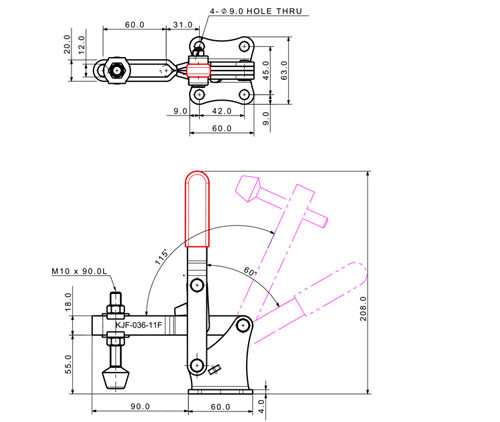 Với lực kẹp 360kg và thiết kế gạt thẳng, Kẹp gạt loại thẳng KJF-036-11F lý tưởng cho nhiều ứng dụng công nghiệp nặng: