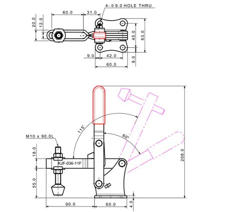 Kẹp gạt loại thẳng KJF-036-11F là một sản phẩm thuộc dòng kẹp nhanh (toggle clamp), cụ thể là kẹp gạt loại thẳng (straight line action clamp) của KJF. Với khả năng cung cấp lực kẹp ấn tượng lên đến 360kg, kết hợp với thiết kế vững chắc và đế mặt bích để dễ dàng lắp đặt, chiếc kẹp này là giải pháp lý tưởng cho việc cố định các chi tiết lớn, nặng hoặc chịu lực rung động cao trong các ứng dụng cơ khí, lắp ráp hoặc kiểm tra, đặc biệt khi cần lực kẹp mạnh và thao tác nhanh chóng theo phương thẳng.