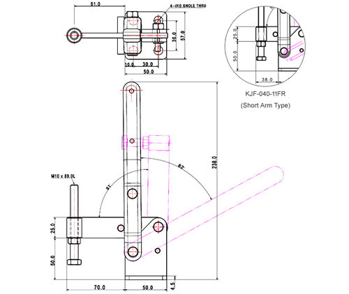 Hành trình thanh kẹp dài: Mã "12F" trong dòng KJF-040 thường chỉ ra phiên bản có hành trình thanh kẹp (plunger stroke) dài. Điều này rất hữu ích khi cần kẹp các vật liệu có độ dày hoặc vị trí khác nhau trong một phạm vi rộng hơn mà không cần điều chỉnh nhiều, tăng tính linh hoạt và hiệu quả trong sản xuất. Các phiên bản có thể có hành trình lên tới 98mm.