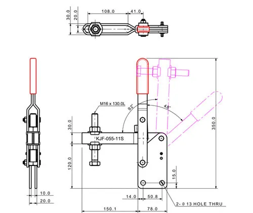 Kẹp gạt kiểu thẳng đứng KJF-055-11S (Lực kẹp 550 kg), một sản phẩm thuộc dòng kẹp tải trọng cực lớn và có khả năng chống ăn mòn vượt trội từ thương hiệu KJF (Hàn Quốc). Đây là một loại kẹp nhanh (toggle clamp), cụ thể là kẹp kiểu thẳng đứng (vertical type), được thiết kế để cố định chi tiết một cách vững chắc nhất trong các ứng dụng công nghiệp siêu nặng, đặc biệt trong môi trường khắc nghiệt như hóa chất, nước mặn, hay nhiệt độ cao.