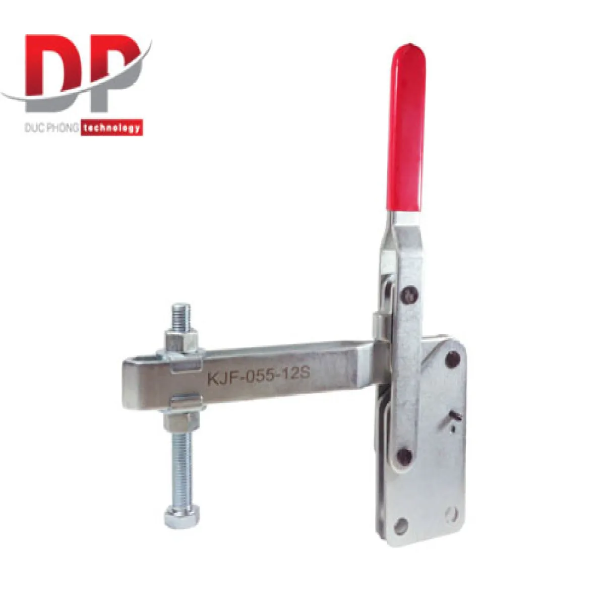 Kẹp gạt kiểu thẳng đứng KJF-055-12S (Lực kẹp 550 kg), một sản phẩm thuộc dòng kẹp tải trọng cực lớn và có khả năng chống ăn mòn vượt trội từ thương hiệu KJF (Hàn Quốc). Đây là một loại kẹp nhanh (toggle clamp), cụ thể là kẹp kiểu thẳng đứng (vertical type), được thiết kế để cố định chi tiết một cách vững chắc nhất trong các ứng dụng công nghiệp siêu nặng, đặc biệt trong môi trường khắc nghiệt và khi cần hành trình kẹp dài.