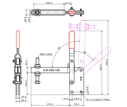Với lực kẹp 550kg và đặc tính thép không gỉ vượt trội, Kẹp gạt kiểu thẳng đứng KJF-055-12S lý tưởng cho các ứng dụng công nghiệp nặng nhất, đặc biệt trong các môi trường đặc thù nơi các vật liệu thông thường dễ bị ăn mòn và đòi hỏi hành trình kẹp dài: