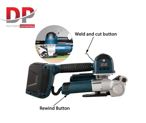 -Máy đóng đai bằng phương thức hàn ma sát tạo ra nhiệt độ cao, mối hàn chắc chắn, hàn nhanh, cắt đai chính xác.