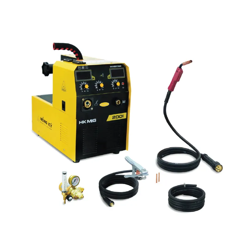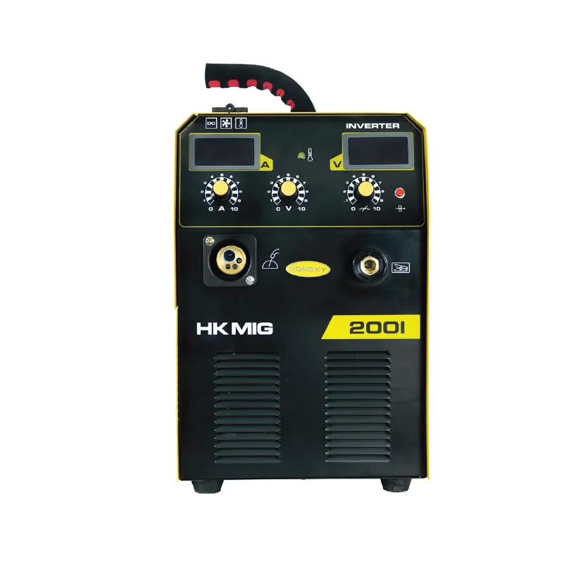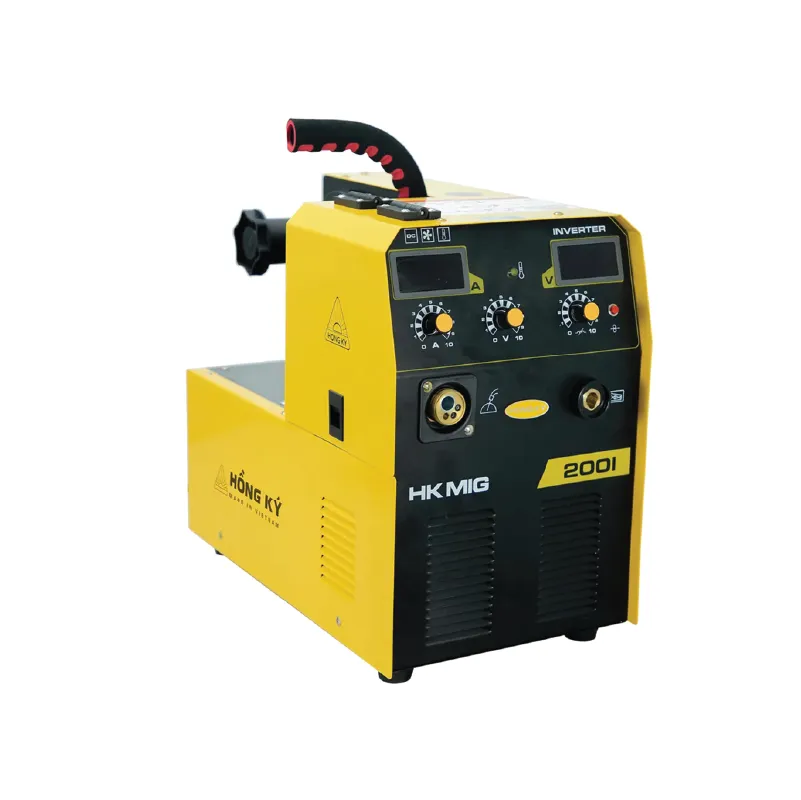 Máy hàn HKMIG200I Hồng Ký ứng dụng công nghệ Inverter tiết kiệm 50-60% năng lượng, hiệu suất 60%. Công suất 9.0 KVA, dòng hàn 50-200A, hàn tốt inox, sắt và vật liệu mỏng. Trọng lượng 20kg, thiết kế gọn nhẹ, hiển thị kỹ thuật số dễ theo dõi. Hoạt động ổn định khi điện yếu (>180V), có chế độ chống giật và tự ngắt an toàn.