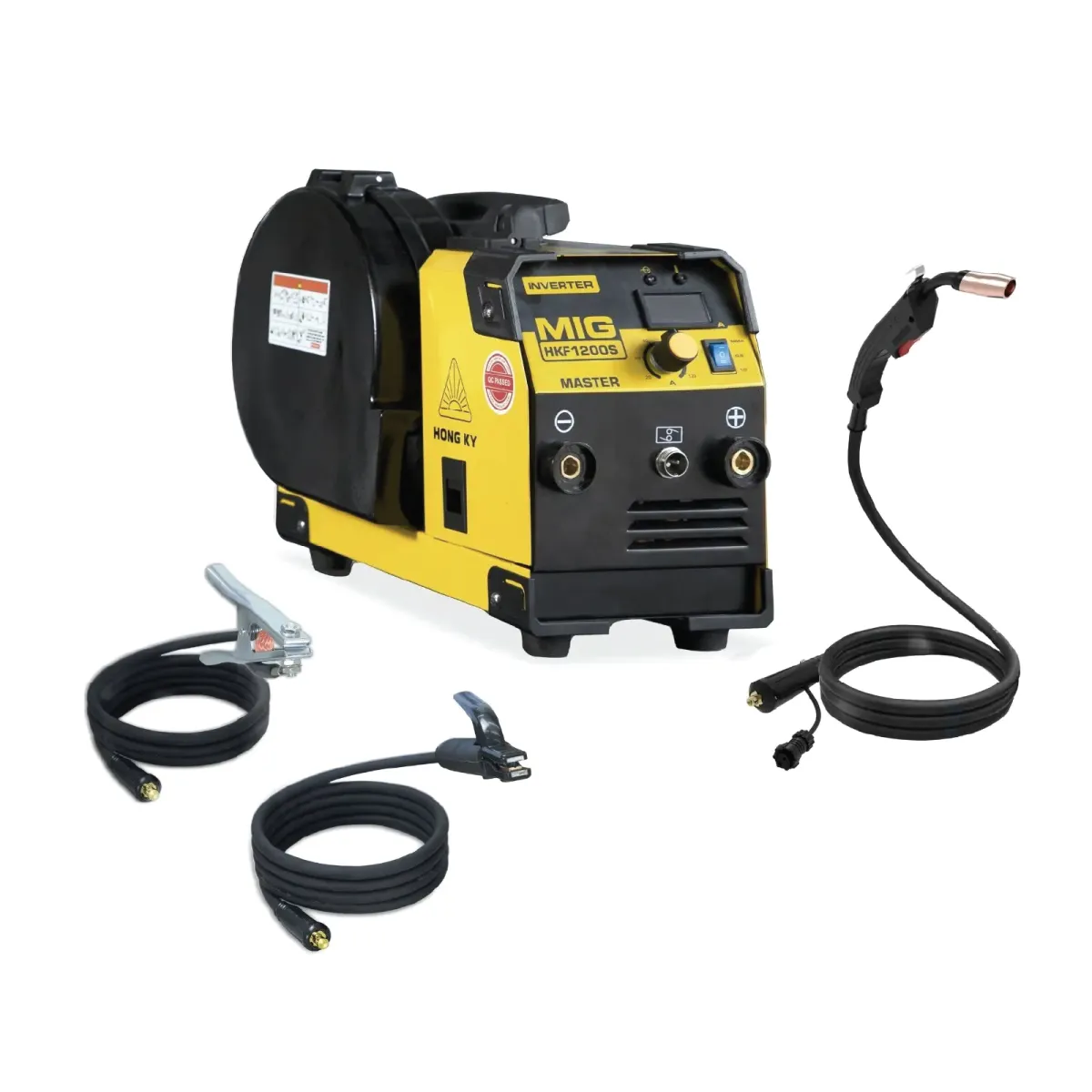 Máy hàn MIG không khí HKF1200S là một trong những sản phẩm nổi bật của Hồng Ký mà Đức Phong phân phối. Với khả năng tích hợp cả hai phương pháp hàn MIG và hàn que. Đây là một dòng máy đa năng với thiết kế nhỏ gọn, công suất mạnh mẽ và tính năng linh hoạt, giúp người dùng dễ dàng xử lý mọi công việc hàn sửa chữa trong gia đình hoặc tại các xưởng gia công nhỏ lẻ.