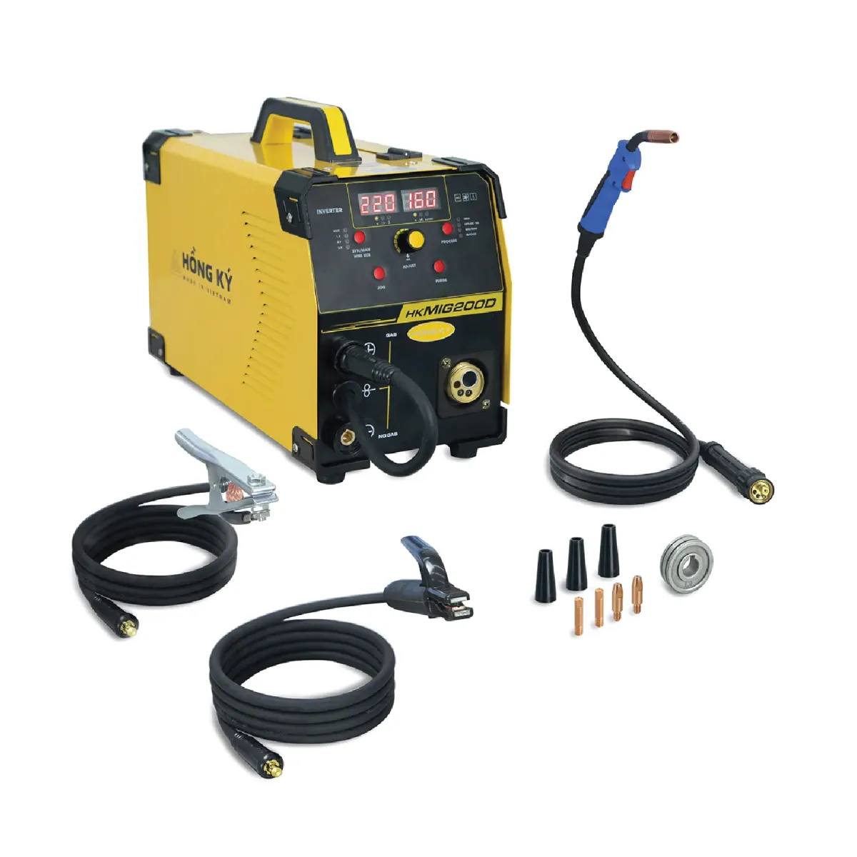 Máy hàn MIG không dùng khí HKMIG200D tích hợp cả ba phương pháp hàn MIG, TIG, và MMA. Đặc biệt, máy có thể hàn MIG với 2 phương pháp: Hàn có khí và hàn không dùng khí. HKMIG200D được trang bị tính năng Hot Start và Arc Force. Máy có thiết kế gọn nhẹ, dễ mang theo và phù hợp với cả người dùng không chuyên. Không chỉ đa chức năng, Máy hàn MIG không khi HKMIG200D còn sở hữu loạt tính năng ưu việt hỗ trợ tối đa cho người dùng.
