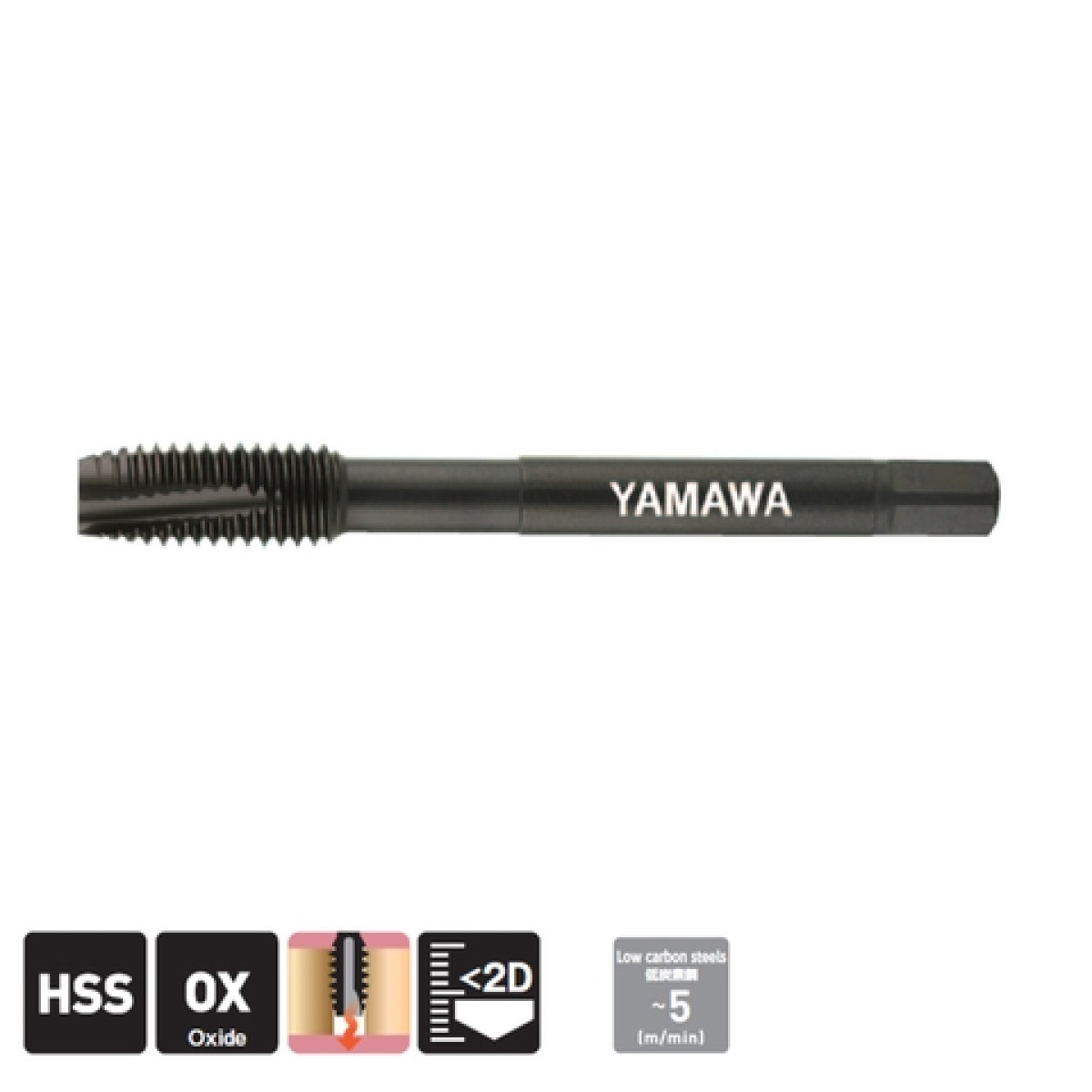 ● Có điểm xoắn trong phần chamfer, IPO đẩy phoi về phía trước theo hướng gia công và được sử dụng cho lỗ thông.