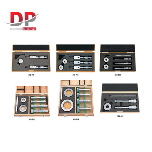368-911 | 6-12mm | 0.001mm | Gồm: 368-161, 368-162, 368-163 + Vòng chuẩn phi 8mm, 10mm + Thanh nối 100mm |