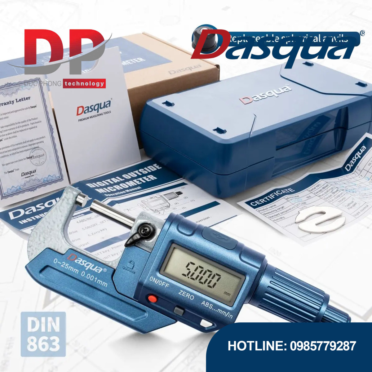 Panme đo ngoài kỹ thuật số Series 4230 - Dasqua là dụng cụ đo chính xác cao, có phạm vi đo 0-25 mm (0-1") và độ phân giải . Panme được làm bằng thép không gỉ nguyên khối và tuân thủ tiêu chuẩn DIN863.